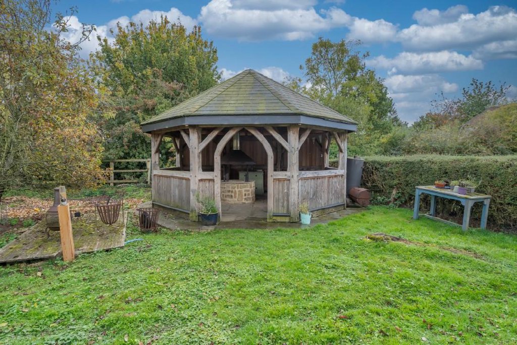 - Solid Oak BBQ Firehut with York Stone Fire Pit and Bespoke Steel Fire Canopy