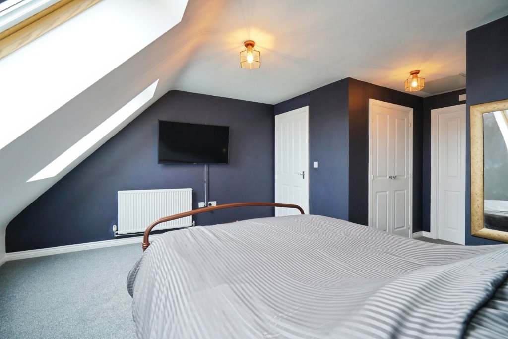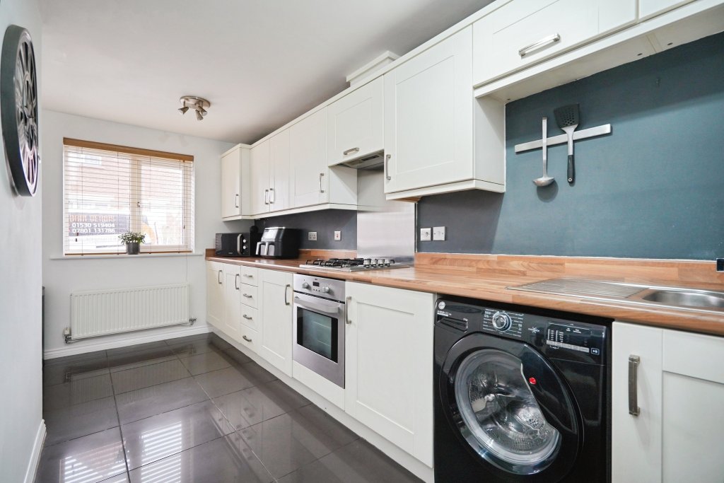 Impressive Family Home – Superb Master Suite, Smart Kitchen & Beautiful Garden Tenure: Freehold Perfectly positioned for easy access to Ashby-de-la-Zouch, Swadlincote and Burton-on-Trent, this beautifully presented three-storey semi-detached home combines modern family living with style, space and comfort. Set behind a neat front garden, the home welcomes you through a bright entrance hall with stairs rising to the upper floors. At the heart of the home lies the smart dining kitchen, featuring a stylish range of contemporary units, quality work surfaces and integrated cooking appliances, with ample space for family dining or casual breakfasts. The spacious lounge to the rear offers an inviting retreat, complete with a feature fireplace, vertical radiator and French doors opening onto the beautifully landscaped rear garden—perfect for relaxing or entertaining. A convenient guest cloakroom completes the ground floor. The first floor offers two well-proportioned bedrooms – one a generous double – along with a modern family bathroom finished with a sleek three-piece suite. The top floor is entirely devoted to an impressive master suite, a true sanctuary featuring a generous bedroom area with skylights, a dedicated dressing area with fitted wardrobes and storage, and a luxurious en suite shower room with a contemporary finish. Outside, the property enjoys off-road parking to the rear. The low-maintenance rear garden features a stylish paved patio, a neat lawn and a decked area – perfect for outdoor living. A superb modern home in a highly convenient location – ready to move straight into and enjoy.