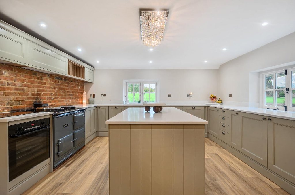Lovingly restored by its current custodians, the property radiates a sense of tranquillity and refined grace. Within, generous and versatile accommodation flows effortlessly, offering four elegant bedrooms and four reception rooms designed for both formal entertaining and relaxed family living. Every space tells a story, from the light-filled traditional Shaker-style kitchen, the heart of the home, with its Aga complemented by high specification integrated appliances, marble-topped island, walk-in larder and separate utility room. This inviting space perfectly blends traditional country charm with contemporary elegance, creating a social hub ideal for family gatherings and culinary creations.