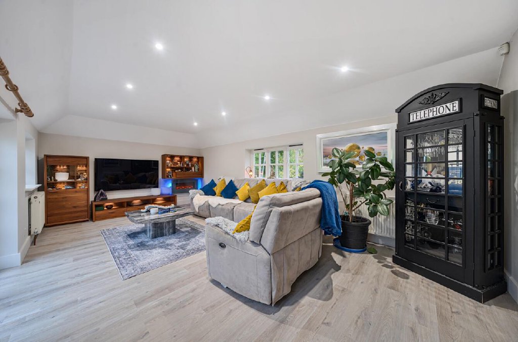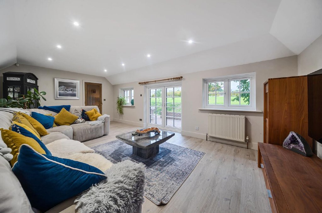 The series of reception rooms each offer their own atmosphere and purpose. The Green Room centres around a magnificent inglenook fireplace inset with a log burner, creating a warm and inviting retreat, while the Blue Room provides a peaceful study or reading space. The third reception room, a comfortable television lounge, has been the setting for countless cherished memories, a place to unwind with family and enjoy evenings together in comfort and warmth.