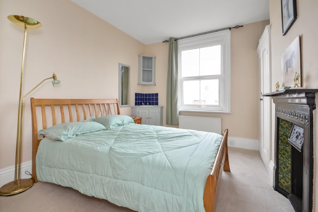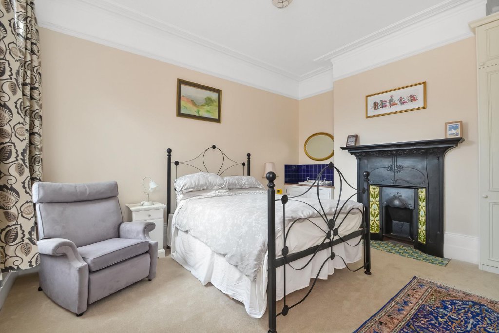 BEDROOM 1 23' 10" x 14' 0" (7.26m x 4.27m) Double glazed sash bay window to front aspect, high skirting boards, high ceiling with coving, two radiators, central chimney breast with surround fireplace, cast iron arched inlay with tiled hearth, double glazed leadlight stained glass window to side aspect.