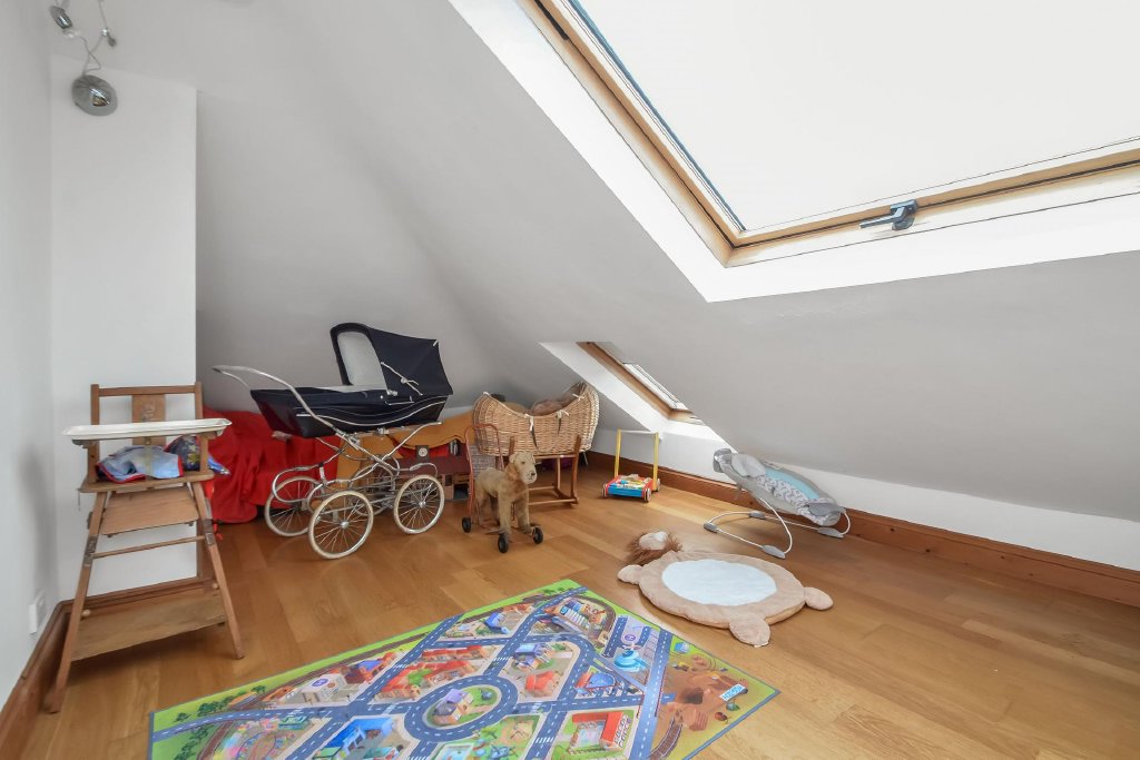 BEDROOM 6 / GAMES ROOM 21' 5" x 11' 6" (6.53m x 3.51m) Measurements taken from approximately 1'0" off floor level with eaves to front and side ceilings, wood laminate flooring, radiator, large skylight window, low level fire escape style window to side aspect.