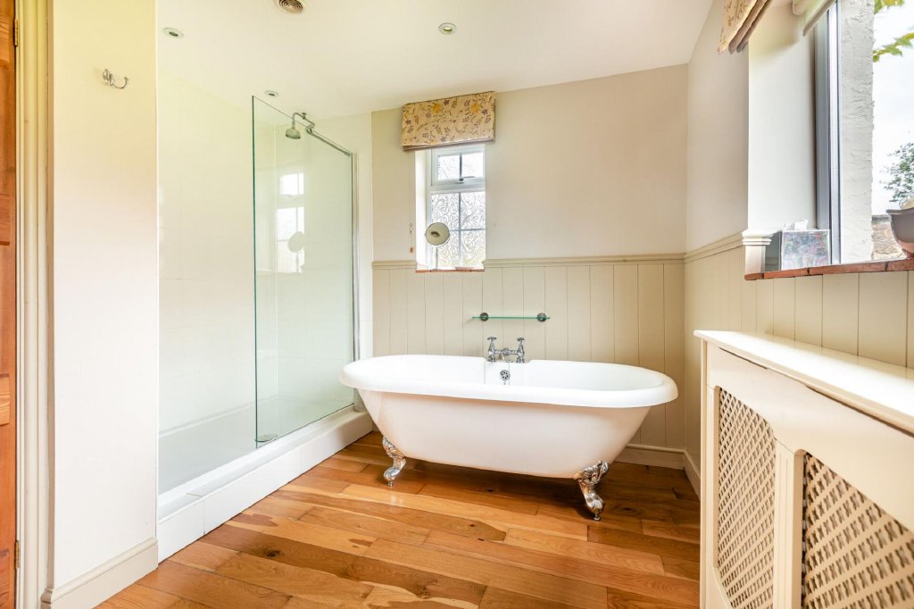 The principal bedroom is exceptionally sizeable, with a W/C and a separate well-appointed en-suite bathroom with both a freestanding roll top bath and shower enclosure.