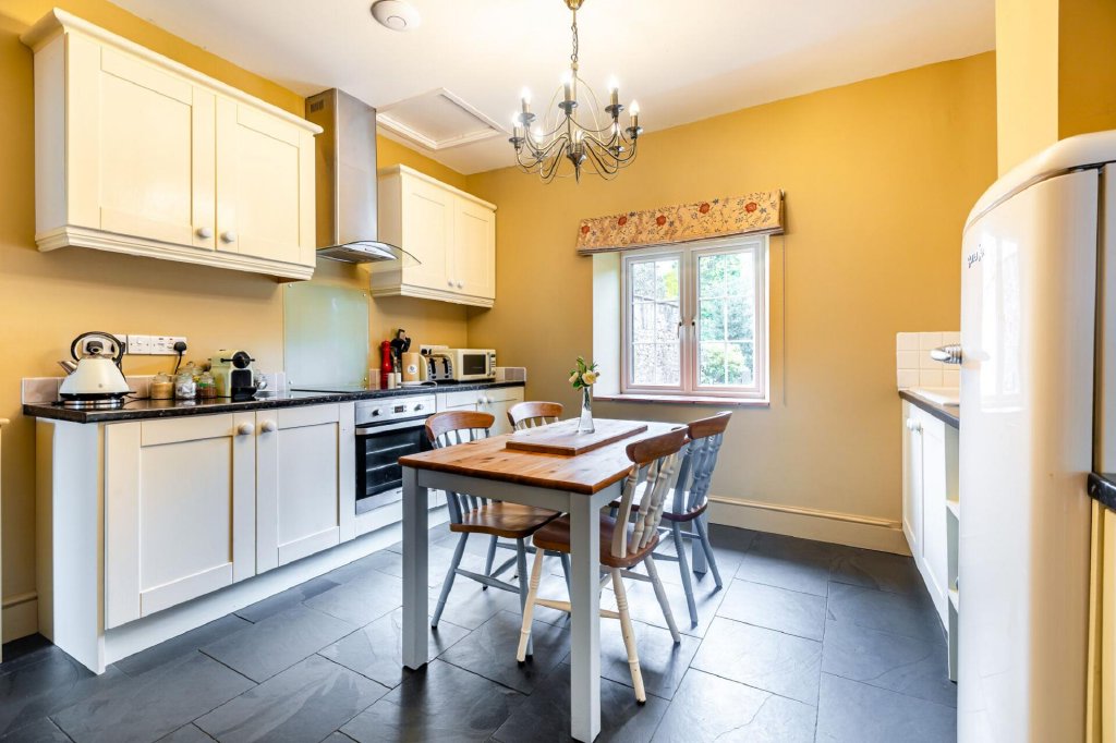 The stable door opens into the heart of the home, revealing a welcoming and beautifully presented country style kitchen-diner. The generous proportions and high ceilings create a wonderful sense of space, blending traditional charm with modern practicality.