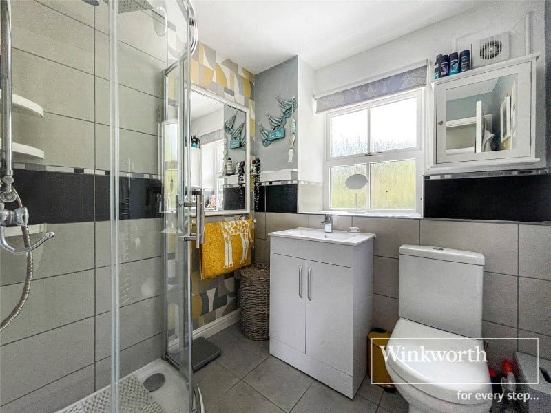 The recently installed, modern integrated kitchen has a separate breakfast bar/seating area and sliding doors that lead into a fully heated orangery with glass roof and direct access onto the garden. There is a separate main reception room with a perfectly placed area to study under the stairs, a useful entrance porch for shoes and coats and a cloakroom with hand basin and wc. Upstairs there are two double bedrooms, both with excellent built in storage and a modern shower room with a walk in shower, wc and hand basin.