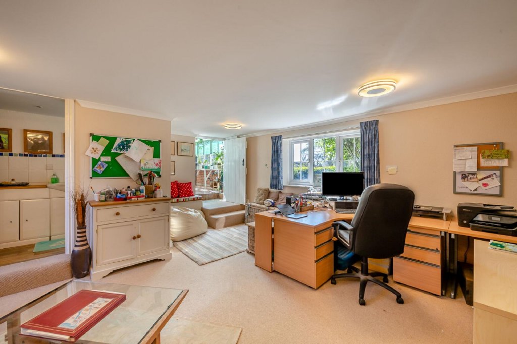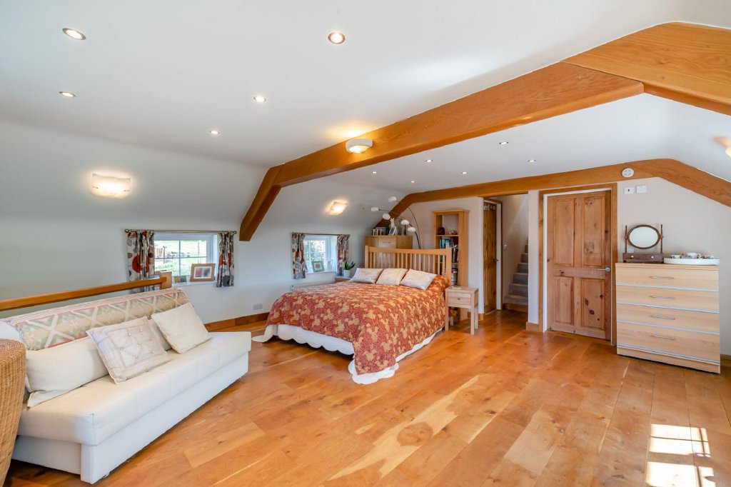 The rear wing of the house is a real highlight. Accessed via a second staircase with a separate entrance, this area includes a cloakroom, large study/playroom, and a lobby showcasing the original cider press. It could be easily converted into a self-contained annexe — ideal for older relatives, adult children, or live-in carers.