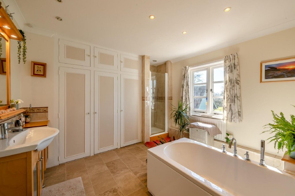 Tucked away within the grounds, the charming 3-bedroom detached cottage offers independent living space with its own off-road parking and private garden area. Believed to date back to the 16th century, the cottage blends character and comfort with modern features such as zoned underfloor heating, an en-suite bedroom, and a bright mezzanine-level reception room that opens onto a Juliet balcony with tranquil views.