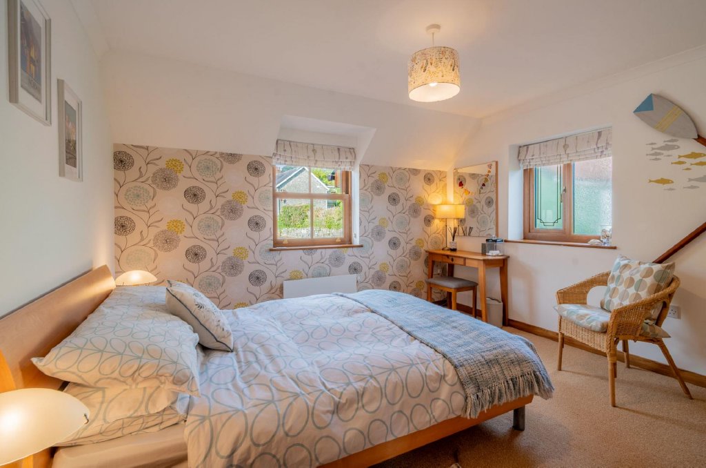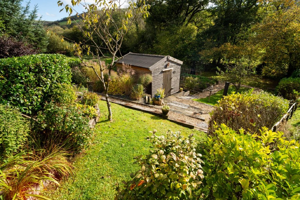 Step through either of the ground-floor patio doors and immerse yourself in the tranquillity of the Welsh countryside. The thoughtfully landscaped garden features multiple seating areas, gently sloping paths, raised beds, a productive vegetable garden, and a lawn that leads down to the peacefully meandering Marlais river bordered by fields and trees. It is an idyllic setting for relaxation, wildlife watching, and stargazing.