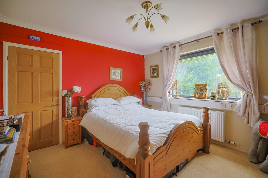 A generous, carpeted double bedroom overlooking the rear garden, filled with natural light. This versatile space connects directly to a further room, making it ideal for multi-generational living or a home office setup.