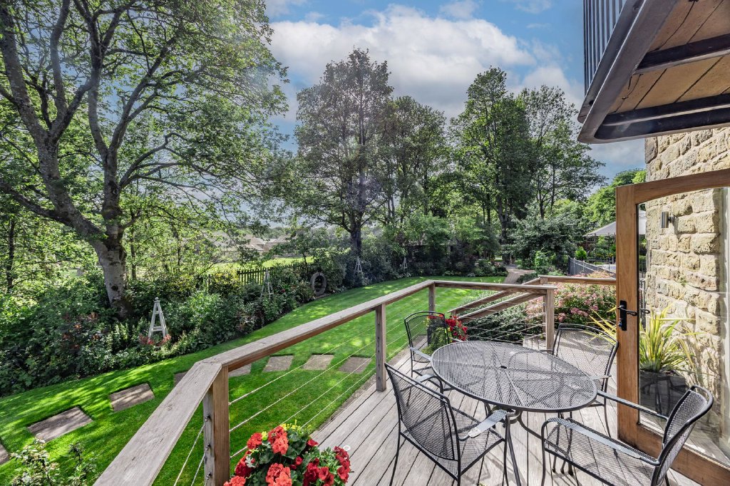 The oak staircase continues to the first floor which also benefits from views of the garden from the floor to ceiling window. The principal bedroom has been beautifully designed with a bespoke fitted headboard, dressing table and a unit which provides additional storage and houses a fridge and a coffee machine. A real standout feature is the vaulted ceiling with exposed beams and the double doors which lead to a balcony enjoying the views across the River Don and the Pennines. A sliding door gives access to an ensuite shower room and there is also a fitted walk in wardrobe. There are two further double bedrooms, with a connecting door, both enjoying vaulted ceilings and exposed beams. A luxury house bathroom with exposed beams, porcelain tiling, a walk in shower and separate bath complete the second floor.