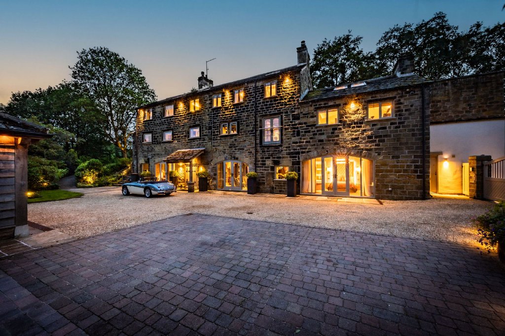 A bespoke oak staircase leads from the hallway to the first floor, with a floor to ceiling glass window enjoying views of the beautiful garden. The living room is a tranquil space with double doors to a balcony with views across the River Don, fields and the Pennines. The living room is filled with character having stone windowsills and a Clear View log burner. Further double doors lead to the formal dining room which has been designed with a boutique ‘restaurant’ feel having a walk in glass wine store and bar area. There is an additional Clear View log burner and double oak doors to a Juliette balcony.