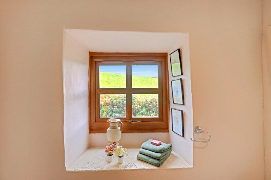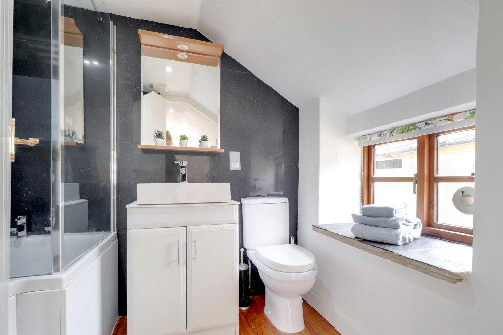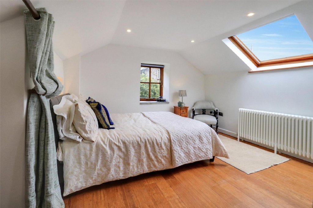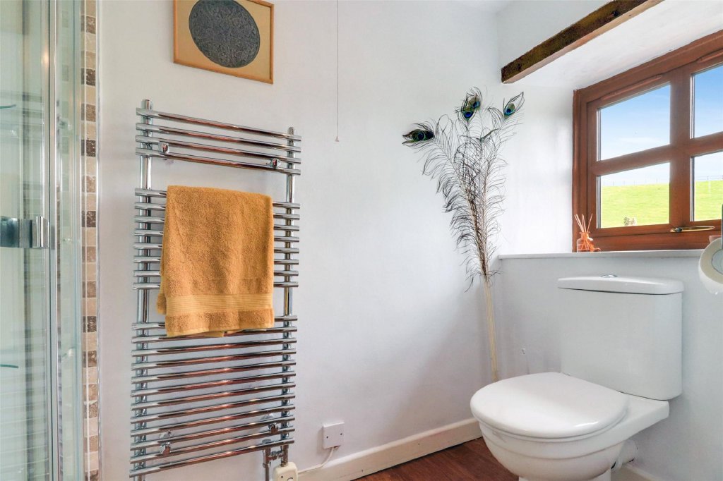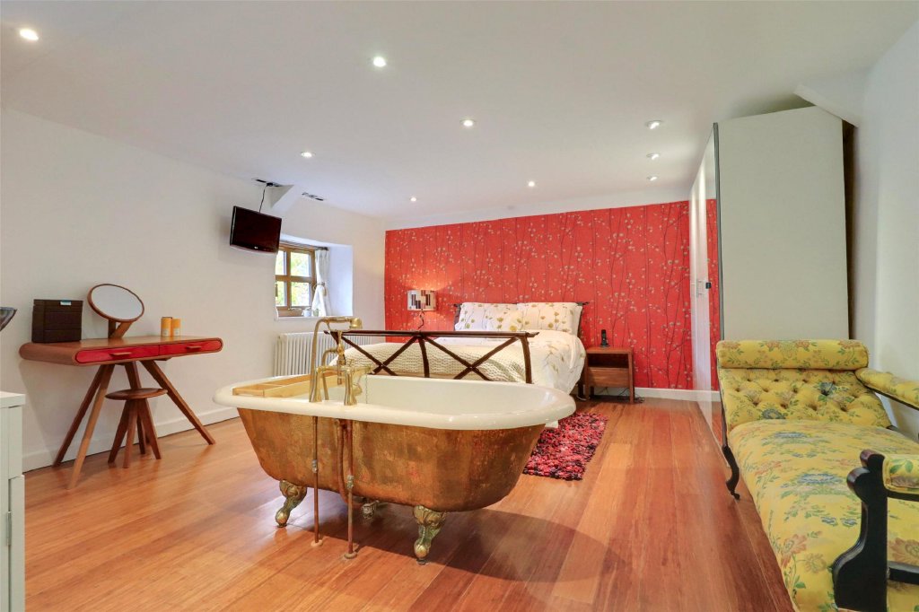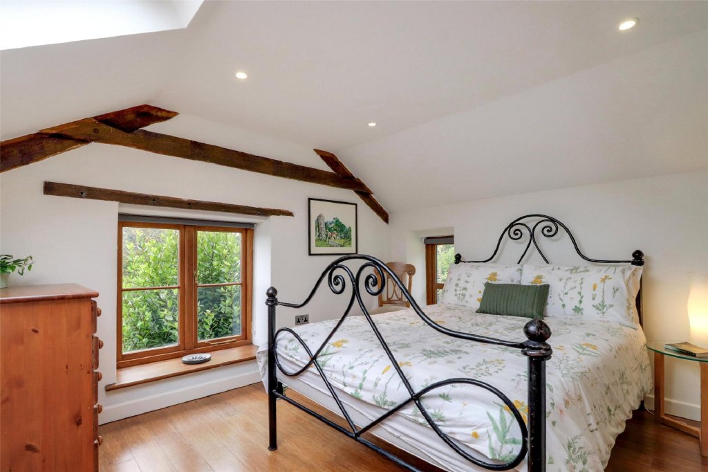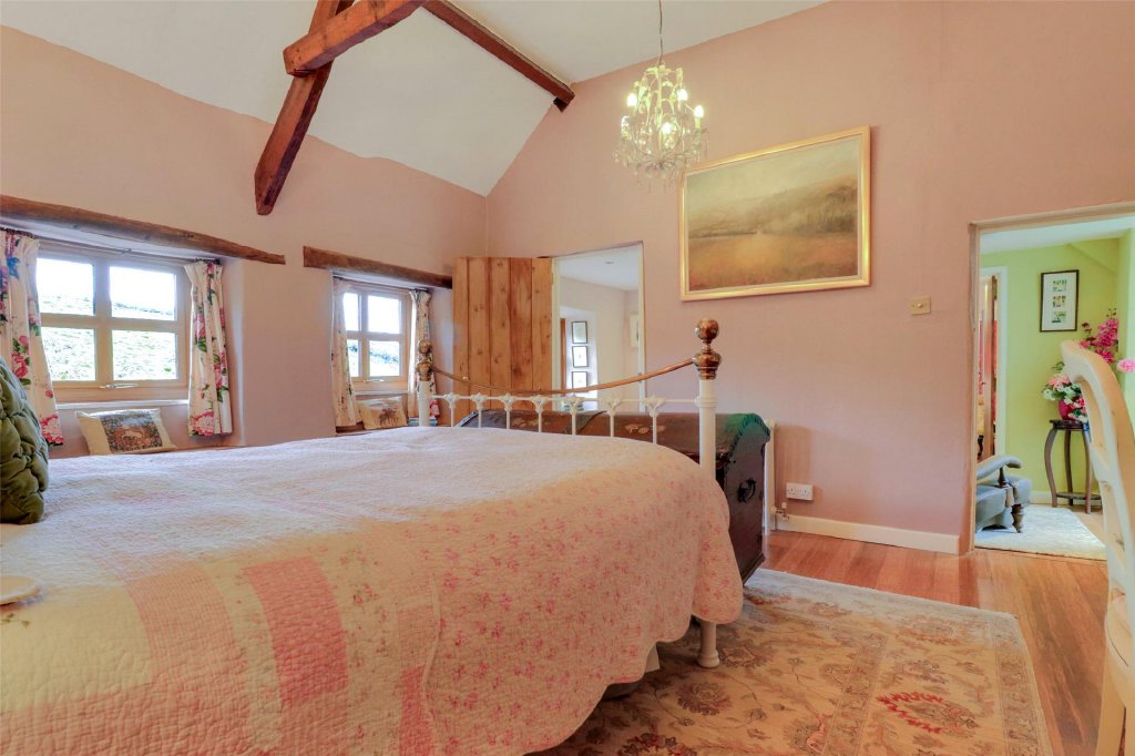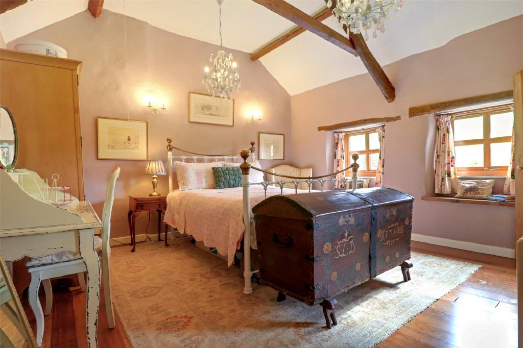 Two separate elegant spiral staircases lead to the first-floor accommodation. On one side, a lobby welcomes you into the master bedroom which boasts a roll-top bath, built-in wardrobes, and an ensuite shower room, returning through the lobby you are greeted with the spacious second bedroom featuring vaulted ceilings, exposed beams, countryside views, and an ensuite shower. The opposite staircase serves two further double bedrooms, both with ensuite facilities, one of which has a door providing access from the outside, offering prime potential for multi-generational living.