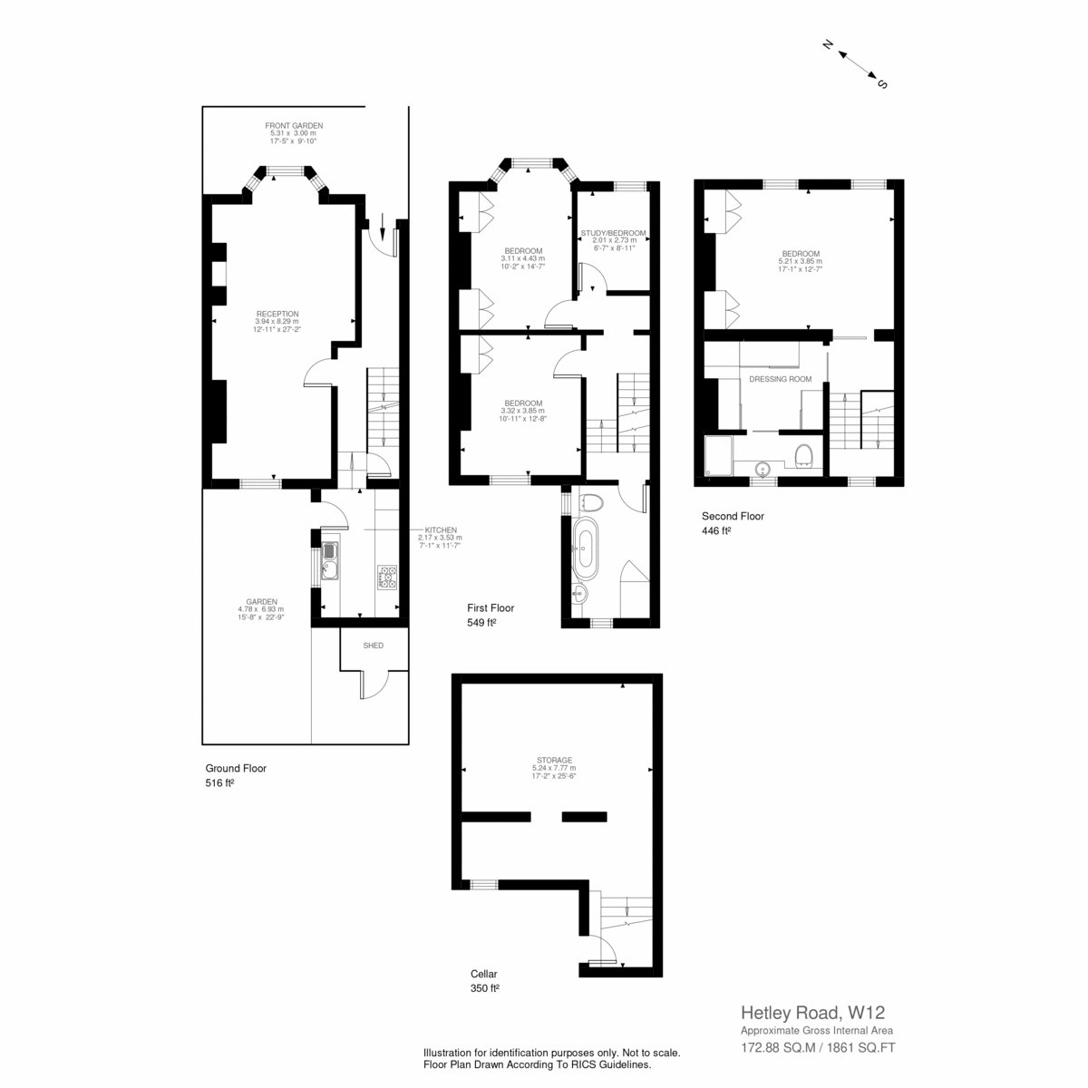 The upper floors provide a thoughtful mix of bedrooms: two generous doubles, a versatile single/study, and the principal suite spanning the top floor with its own walk-in dressing room and shower room. A large family bathroom serves the first floor, while a basement cellar offers excellent storage or scope for conversion.