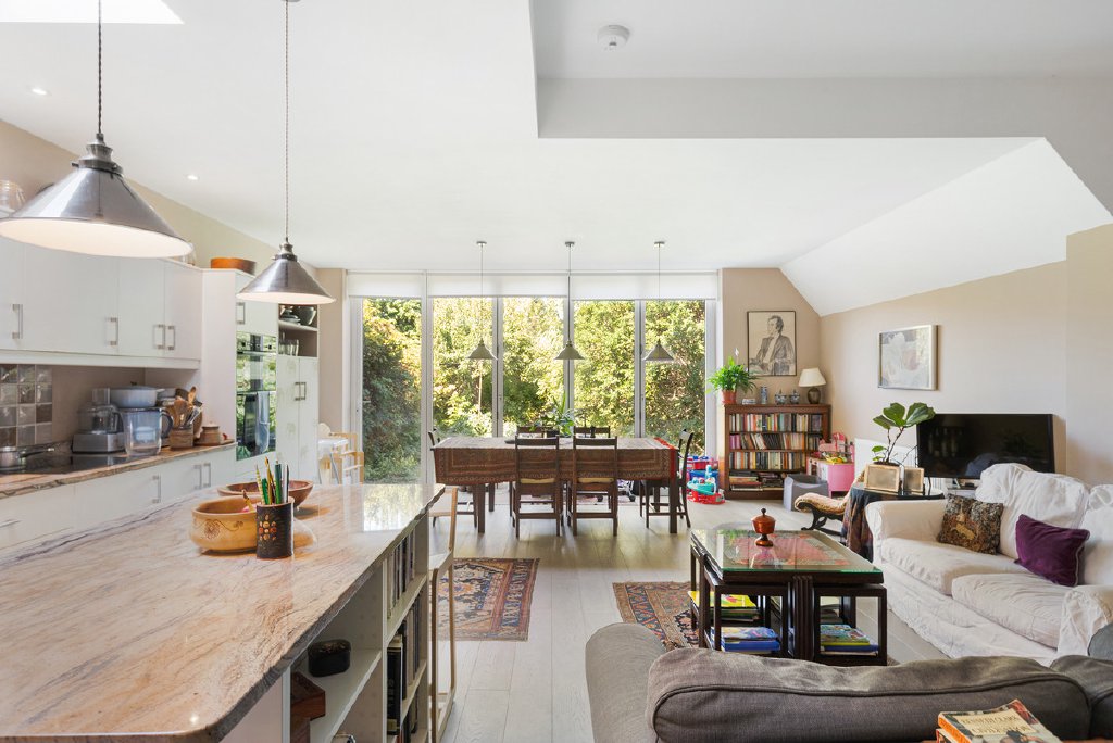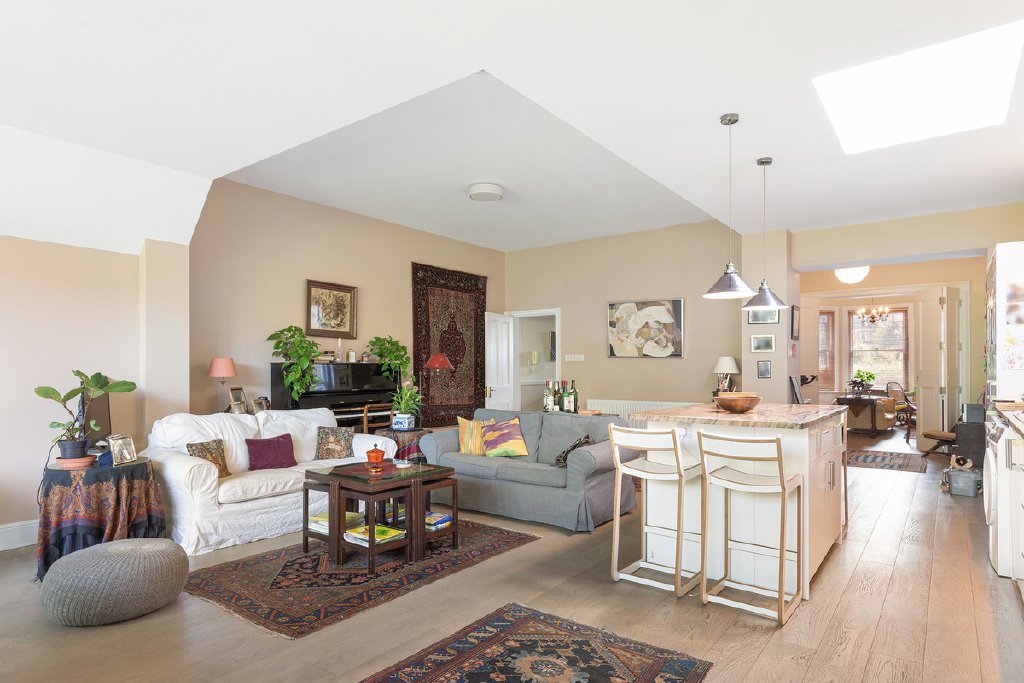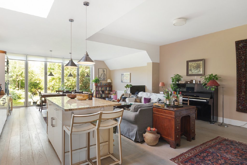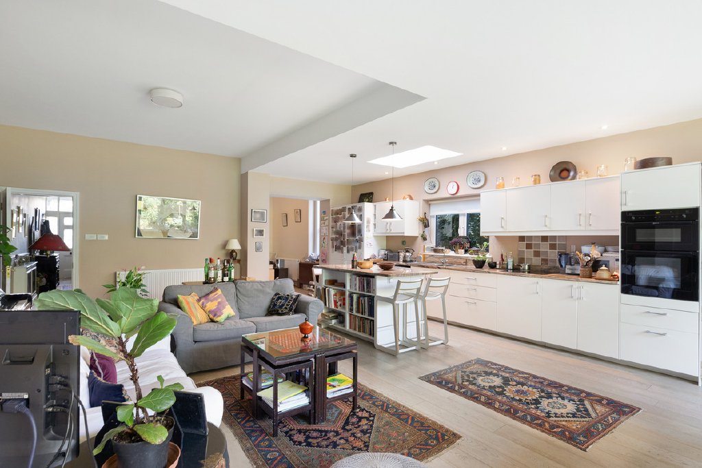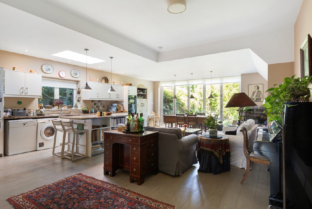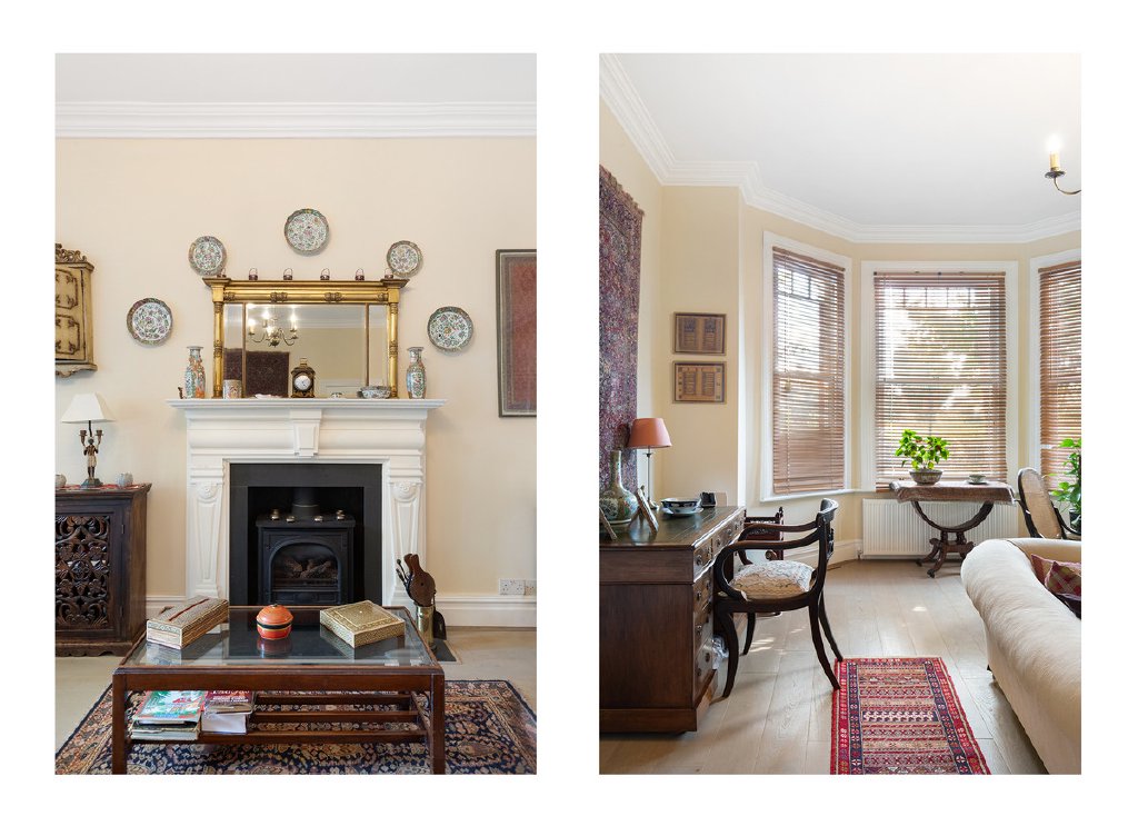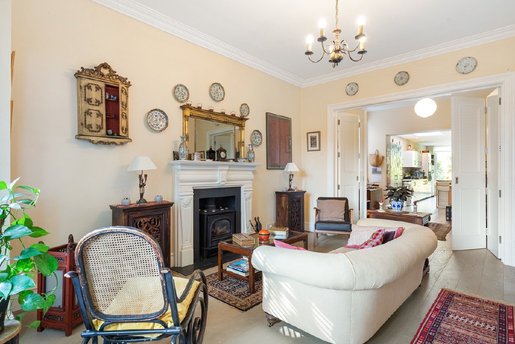 The ground floor boasts two beautifully appointed reception rooms, perfect for formal entertaining or relaxed family gatherings. The kitchen, which opens onto the breathtaking 65-foot mature garden, additionally, a discreet utility room, guest WC, and cellar add to the practicality of the home.