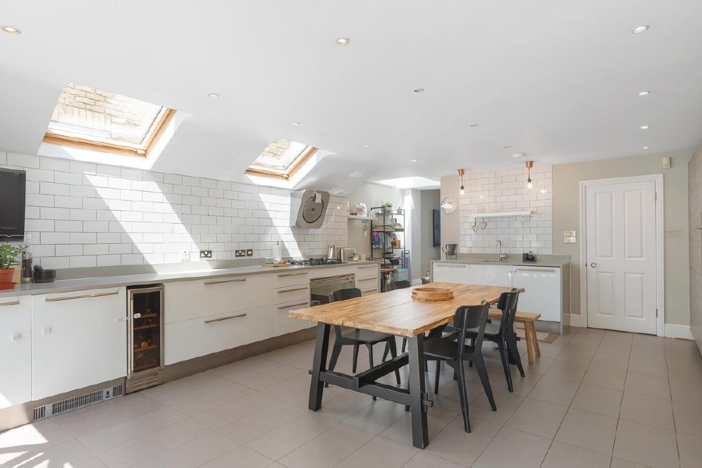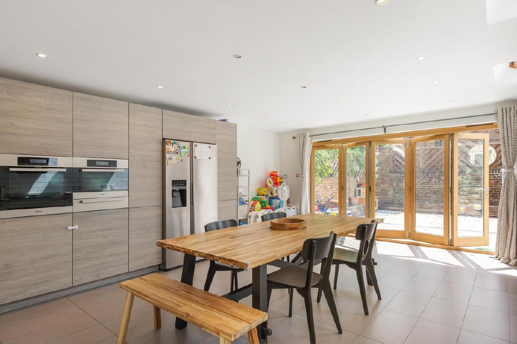 The lower ground floor has its own open-plan reception/kitchen/playroom, ideal for guests, au pair accommodation, or teenage retreat, alongside two more double bedrooms and bathrooms.