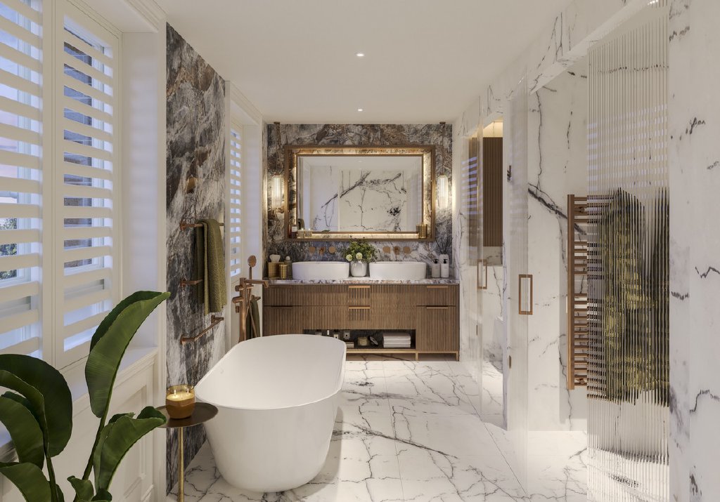 The principal suite is a true retreat, boasting a private balcony overlooking Frank Banfield Park, a lavish dressing room, and a spa-inspired ensuite with a freestanding bath and large-format stone finishes. Four additional bedrooms, each with impeccable design and generous proportions, ensure comfort and privacy for family and guests alike. With the option to incorporate a private lift, The Westbury is designed with the future in mind, offering effortless accessibility across all floors.