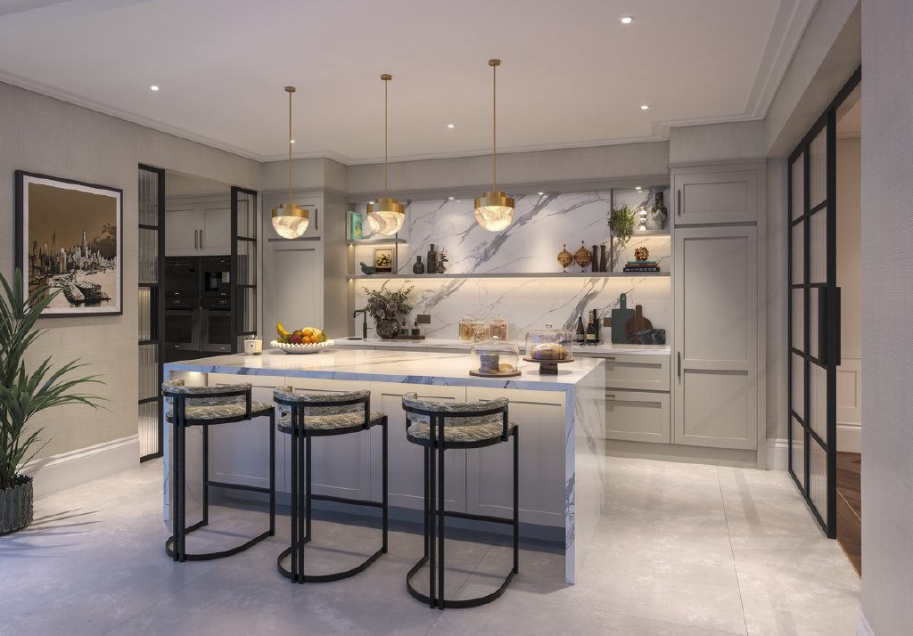 Every detail of The Westbury has been carefully considered, from its grand entrance with Georgian-style panelled doors to its spacious open-plan living and dining areas that exude refined elegance. The bespoke European kitchen, featuring integrated Miele appliances, a feature island, and a separate preparation kitchen, is designed for both everyday indulgence and grand entertaining. The cinema room with a bespoke bar provides a private escape for immersive entertainment, while the expansive first-floor terrace, complete with a pergola and outdoor cooking area, offers an idyllic setting for al fresco gatherings.