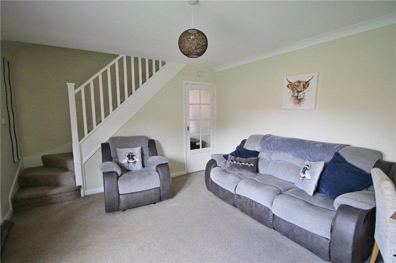 12’1 x 14’2 (min) 17’3 (max) a bright reception room with UPVC window to the front aspect, side stairs to the first-floor accommodation, radiator, power point and TV point.