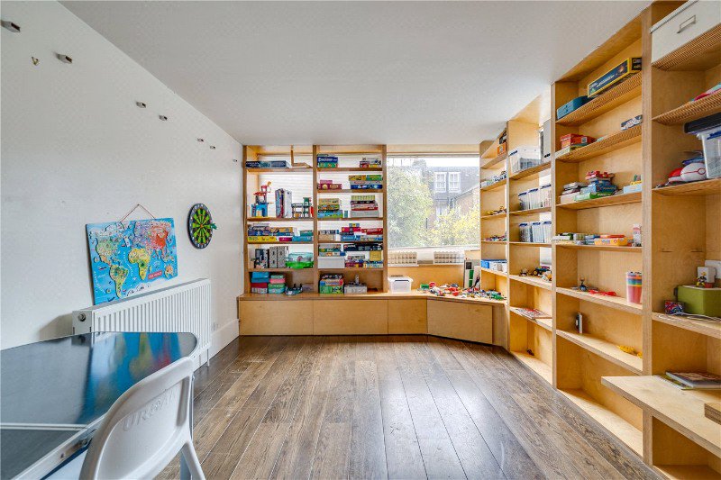 On the first floor there is a large family room at the front with a bay window and high ceilings, which lead through to a large study. At the back of the property is a large double bedroom, with views over the private garden. There is a family style bathroom to serve this floor.