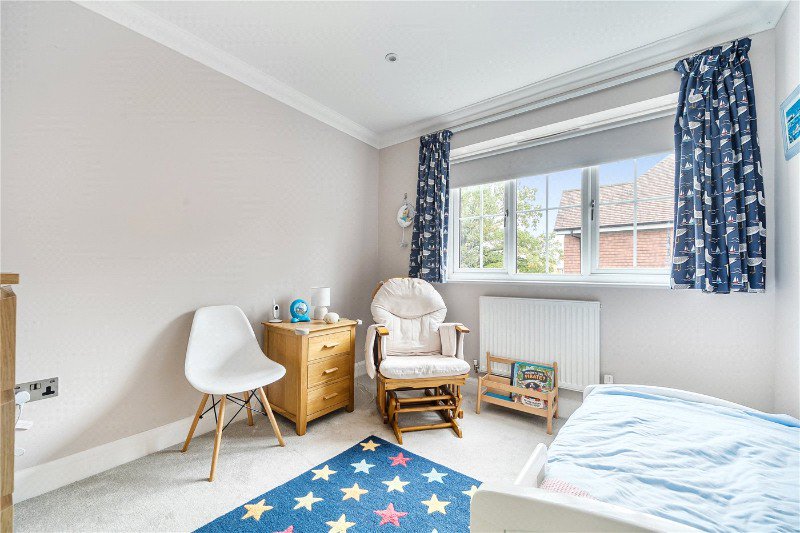 The ground floor comprises inviting entrance hallway, downstairs cloakroom and modern kitchen/breakfast room with plenty of space for a good sized dining table. The kitchen has great amounts of premium handleless storage units and drawers, stone work top, breakfast bar, wine fridge and integrated high quality Seimens appliances. The open plan sitting room and great usable conservatory is light, spacious and versatile, with French doors to the rear garden. There are also two very useful storage cupboards, great for hiding away shoes and jackets.