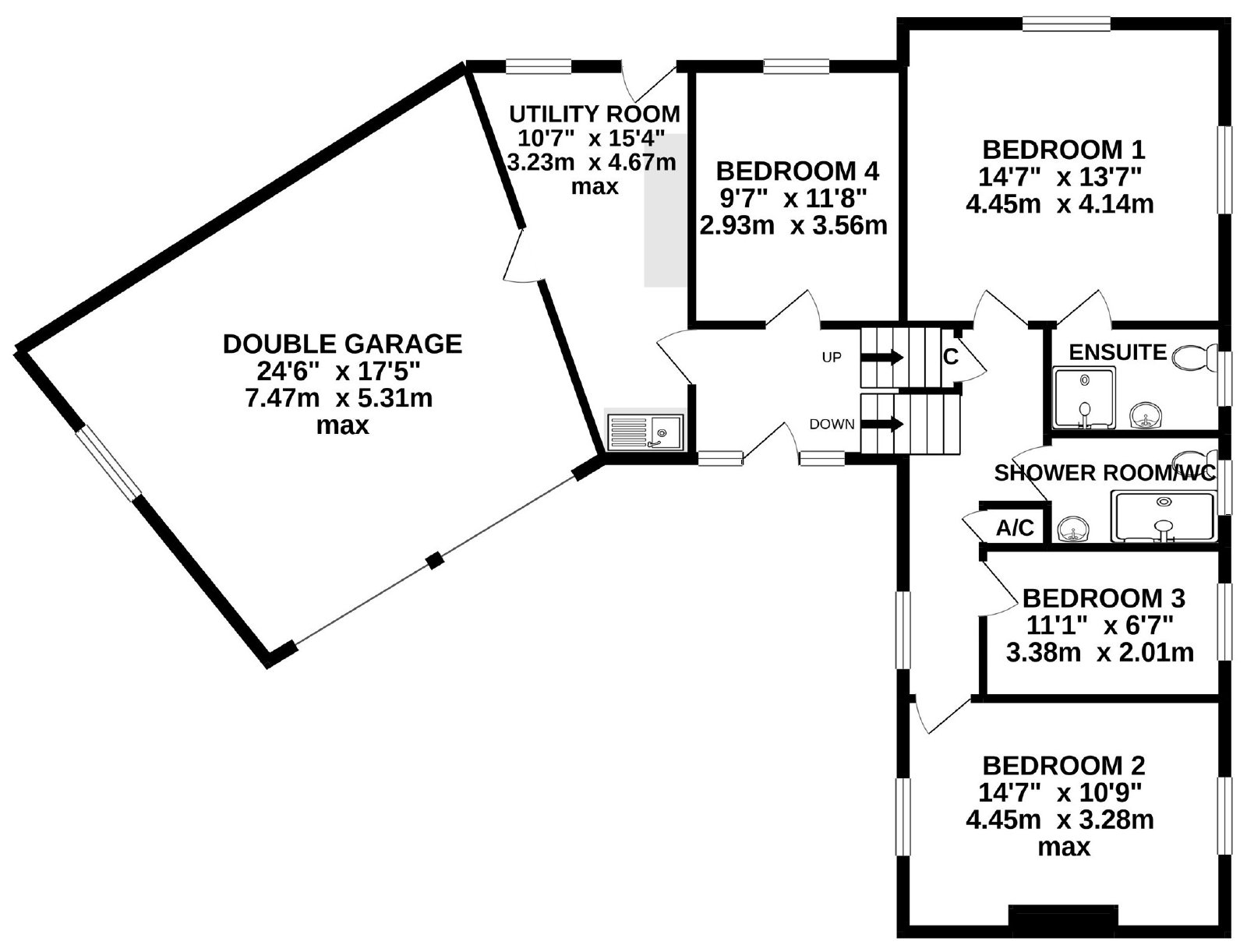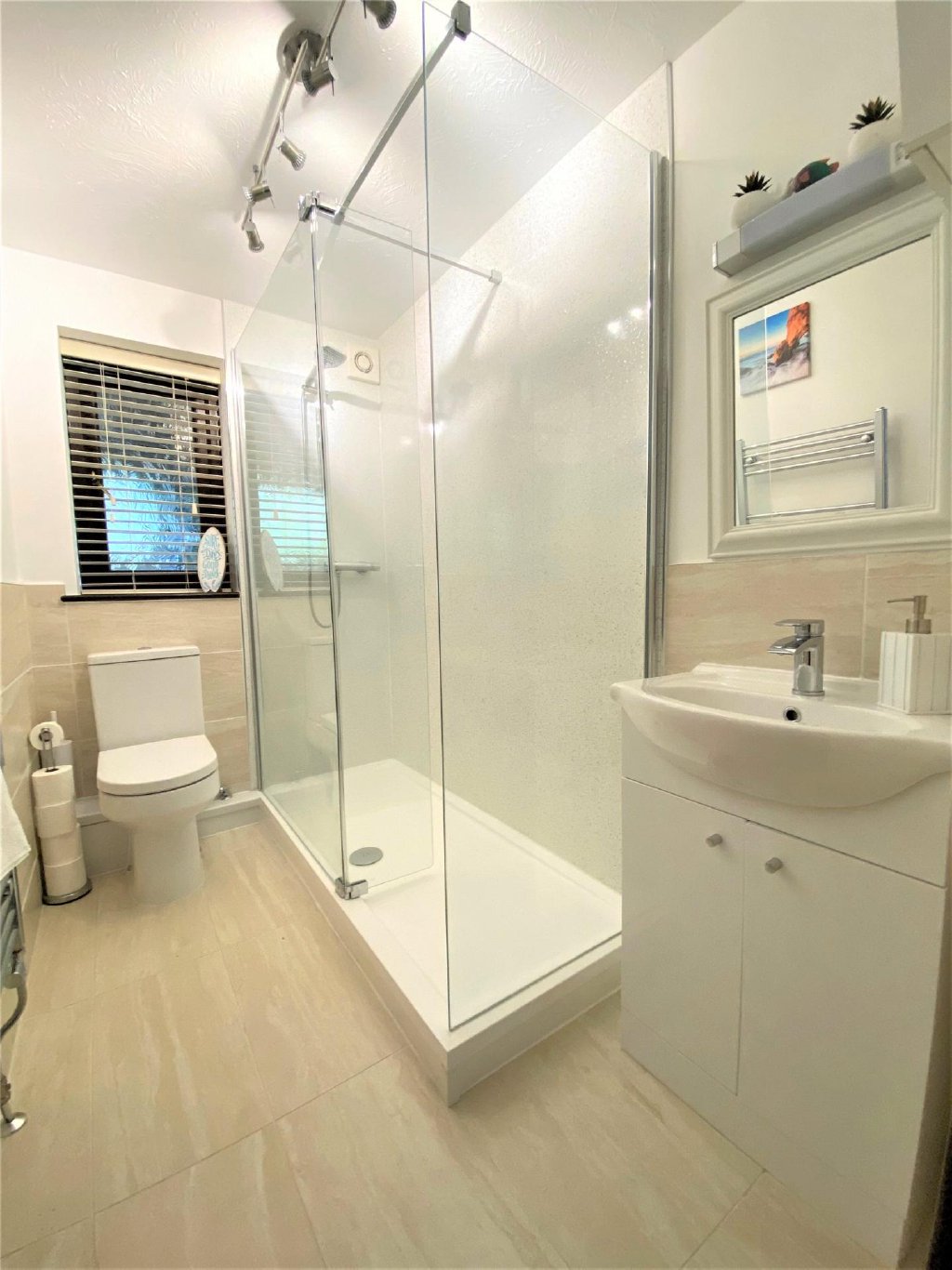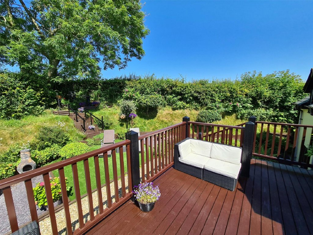 The property has four bedrooms, the dual aspect master suite is spacious with plenty of room for free standing furniture and has an en-suite shower room/WC with a corner shower cubicle. There are three further bedrooms, two of which are large enough to accommodate a double bed and share use of the pristine family shower room/WC. The property has the benefit of oil fired central heating and UPVC double glazing. The light and airy accommodation flows very well and with the outside decking really comes into its own when entertaining. The principle rooms enjoy the best of the outlook over the gardens. The large integral double garage has power and light connected with a large storage void above it.