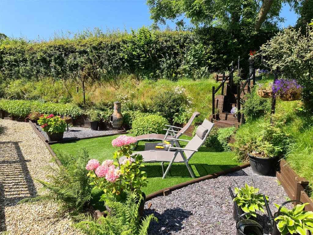The outside space provides private and secure gardens beyond the five bar gate and gated side entrances. The gardens provide space for social gatherings on the large decking and also a number of places to sit and enjoy the pond and upper terrace”.
