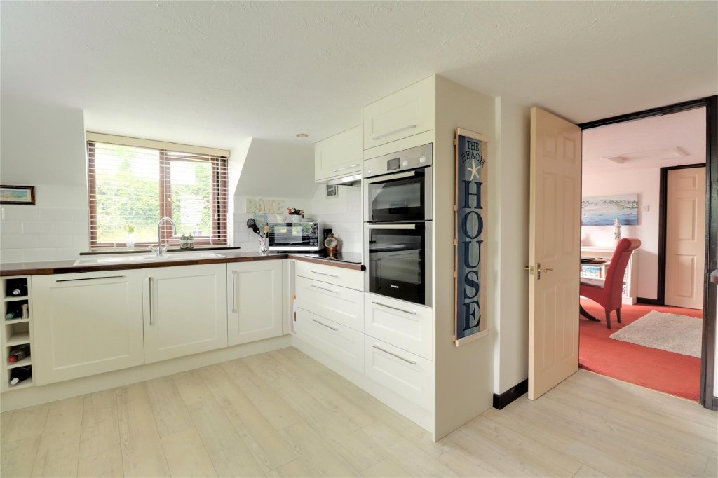 Internally, rooms include the spacious dual aspect lounge which has a feature stone fire surround with inset wood burning stove. The formal dining room has room for a good sized table and has access out to the superb decking where outside dining and relaxing is easily achievable when the weather conditions are favourable. The superb dual aspect fitted kitchen/breakfast room has lovely views across the rear and side gardens. The kitchen area is well equipped with a wide range of matching light coloured wall and base units with a large one and a half bowl sink unit with mixer taps above. Included in the sale is a double electric oven, induction hob, extractor and dishwasher, all of which are made by Bosch. There is room for casual breakfast dining, recessed down lighting and a wood effect flooring. A utility room can double up as an office which is perfect for those who work from home.