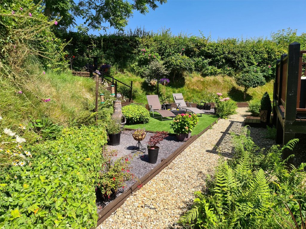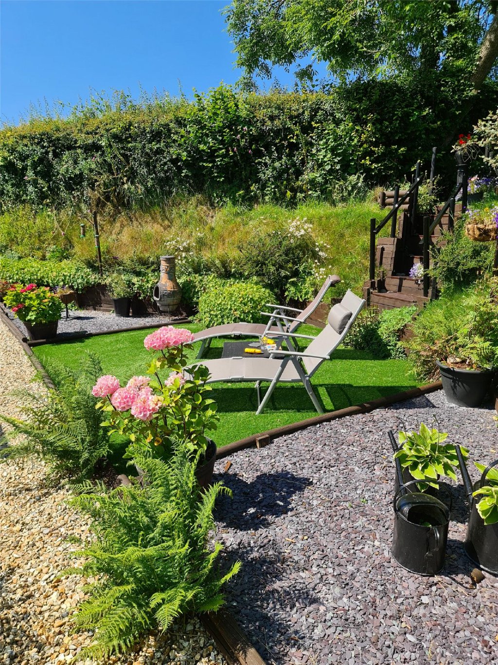 The rear garden is most attractive, predominately featuring a range of further shrubs and bushes with meandering gravelled paths and an Astro turf level area perfect for sun worshipers. At the very back of the garden steps lead up to an elevated seating area from which a great advantage point can be enjoyed of the back of the home along with the views in the distance towards the surrounding landscape. This particular part is a good positon for evening sunshine and enjoying a drink. At the side, the garden further opens up where there is an attractive ornamental pond with many plants and shrubs, a further circular lawn, greenhouse and young coniferous trees. The hedges are full of colour with foxgloves, daisy’s and further perennials which all provide an attractive wildlife habitat. There is further outside lighting and water. The gardens could be adapted to suit a wide range of buyers but they are a major benefit of this high quality individual modern home.