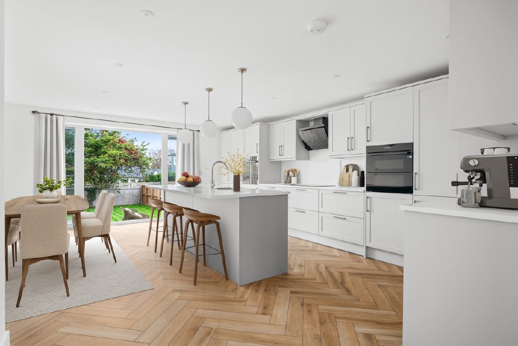 The heart of the home is the impressive open-plan living space, complemented by a generous level garden and paved terrace - ideal for entertaining or relaxing outdoors.