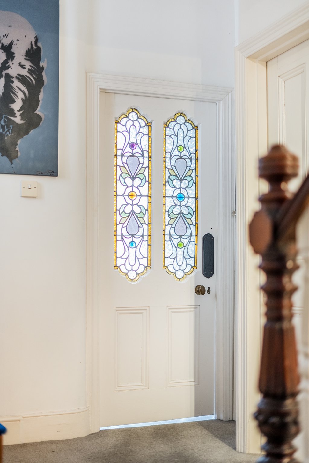 Tucked away on an enviable corner plot, the home boasts its own private woodland—an outdoor haven for nature lovers, and those who cherish privacy. Impeccably maintained throughout, the house welcomes you with an impressive entrance porch and a breath-taking hallway featuring original tiled flooring, exquisite stained glass, and ornate period details that set the tone for the rest of the home.