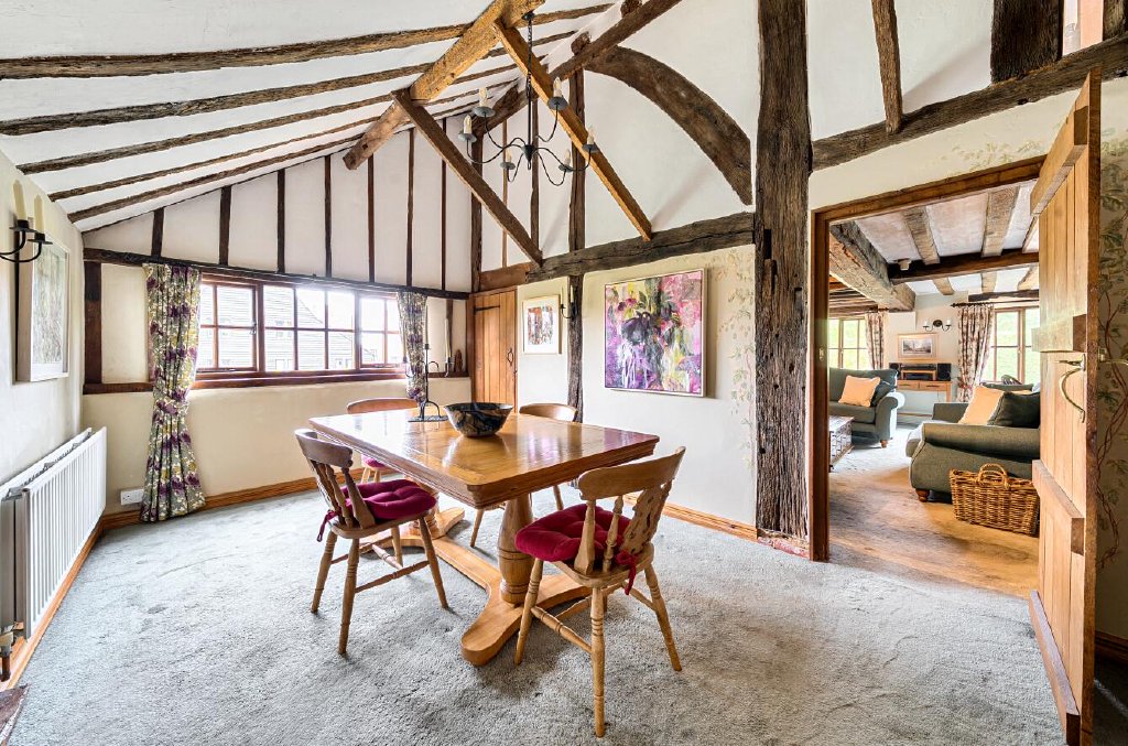 Set across three floors, the accommodation is linked with an American oak staircase and is rich with heritage features, including exposed timber beams, character fireplace, timber latch doors, and a magnificent vaulted ceiling showcasing the property's medieval origins. Each room tells a story, with architectural details that evoke centuries of English country life.
