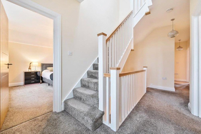 On the first floor, the principal bedroom benefits from a dressing area and a luxury en-suite shower room, complemented by three further well-proportioned bedrooms and a beautifully appointed family bathroom. The top floor offers a versatile fifth bedroom with its own modern shower room, ideal for guests, teenagers, or use as a home office.