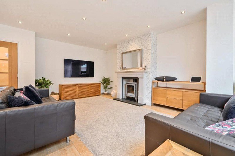 The property offers spacious and flexible accommodation arranged over three floors, designed with modern family living in mind. The ground floor features an inviting entrance hall, a stylish cloakroom with shower, two generous reception rooms, and an impressive open-plan kitchen/dining/family room—an exceptional social space fitted with high-quality integrated Bosch appliances, Silastone work surfaces, and a large breakfast bar. Bi-fold doors open onto the rear patio, seamlessly blending indoor and outdoor living. A useful utility room provides additional storage and appliance space.