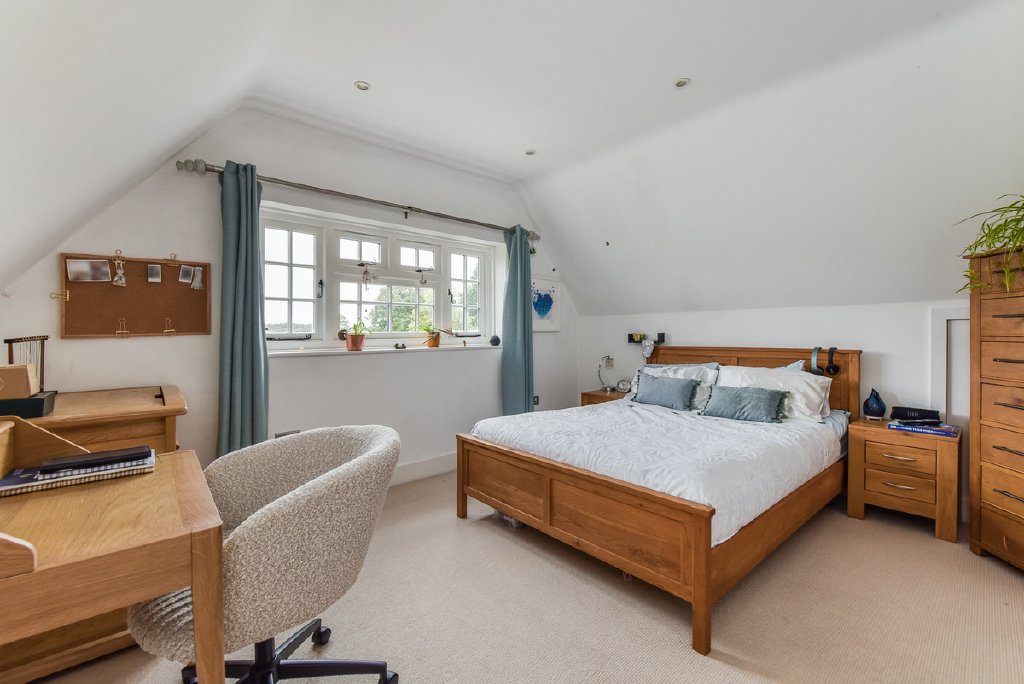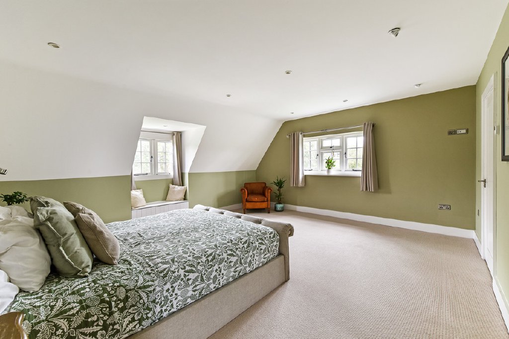 A ground-floor bedroom with en-suite shower room offers flexibility for guests or multigenerational living, while additional rooms currently serve as a home office, gym, and sitting rooms. Four generous en-suite bedrooms feature stylish contemporary fittings. The principal suite is a true sanctuary, boasting a dressing area, bespoke fitted wardrobes, and French doors leading to a large balcony that captures the most magnificent sunsets over the fields, a perfect spot for morning coffee or evening dining.
