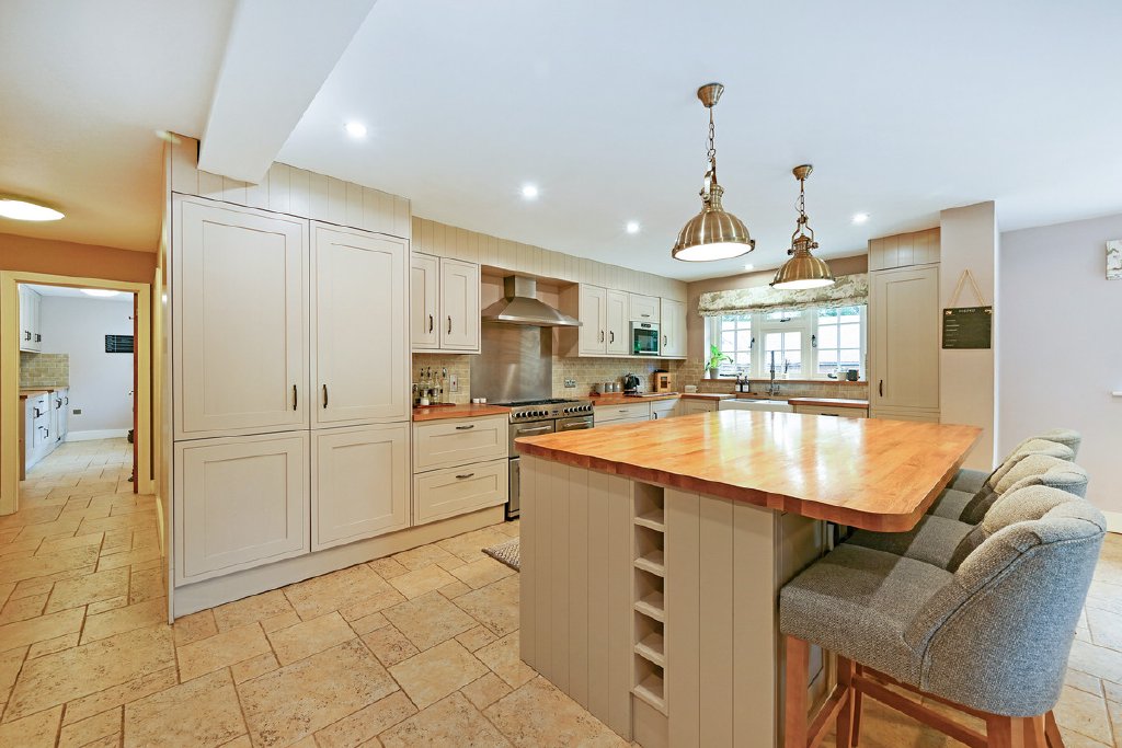 From the moment you step inside the grand reception hall, the craftsmanship and attention to detail are evident. The interiors have been meticulously designed to balance style and practicality, creating spaces that are both elegant and inviting. The ground floor offers five versatile reception rooms in addition to the expansive triple-aspect kitchen and dining area which is the true heart of the home. The kitchen’s large central island makes it ideal for family gatherings and entertaining, while the drawing room, complete with a feature fireplace, provides a more intimate space to unwind.