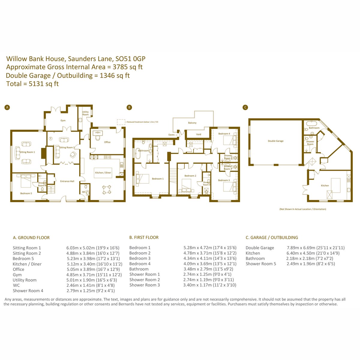 - Five versatile reception rooms, including drawing room with feature fireplace, home office, gym, and guest suite