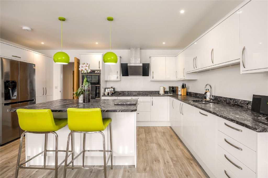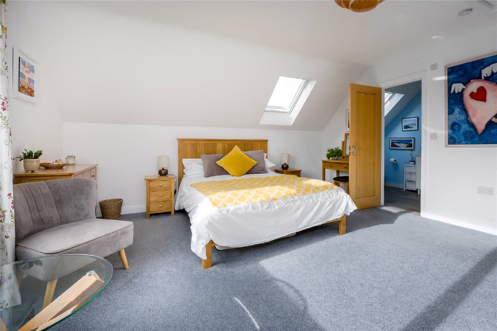 Entry via front door into impressive hallway, providing access to all primary ground floor accommodation. To the rear is a bright and airy kitchen/dining room, with doors out to the rear garden. The kitchen has plenty of eye and base level units, with worktop over, breakfast bar and a range of high specification integrated appliances. Double doors lead through to the lounge, a cosy space to unwind. The utility/boot room is accessed off the kitchen, and a door leads into a garage with electric up and over door. Two well-proportioned bedrooms are situated at the front of the chalet, one currently utilised as a study, the other with an ensuite shower room. The family bathroom completes the ground floor accommodation. The ground floor benefits from zoned underfloor heating.