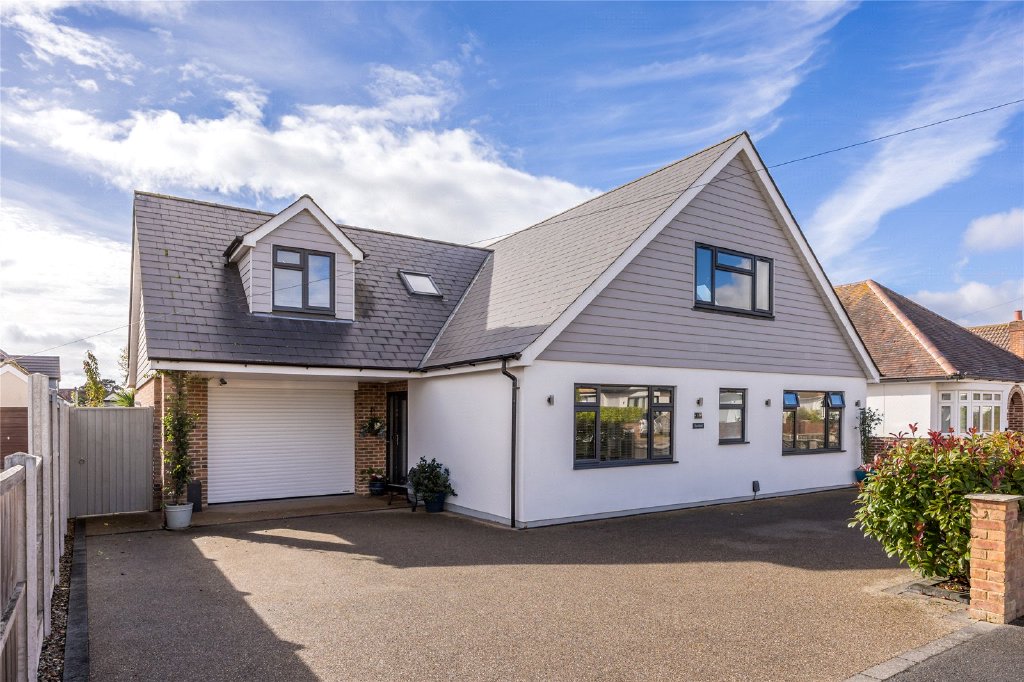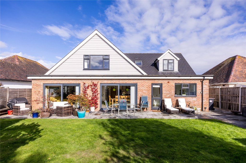 A beautifully designed contemporary five-bedroom chalet, with garden studio, positioned on a southerly facing plot, in a sought-after location in Mudeford.
