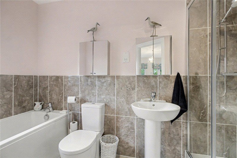 Upstairs, the master suite is truly exceptional, a light-filled sanctuary featuring a remarkable walk-in dressing room and an immaculate four-piece en-suite bathroom. The remaining bedrooms are all generously sized, with bedroom two enjoying its own en-suite shower room. Bedroom three now benefits from built-in wardrobes, cleverly designed to close off the original interconnecting door to the en-suite. This alteration has been thoughtfully carried out so that the bathroom door remains in place, allowing the layout to be easily reverted if desired. The pristine four-piece family bathroom and ample storage complete the upper floor.
