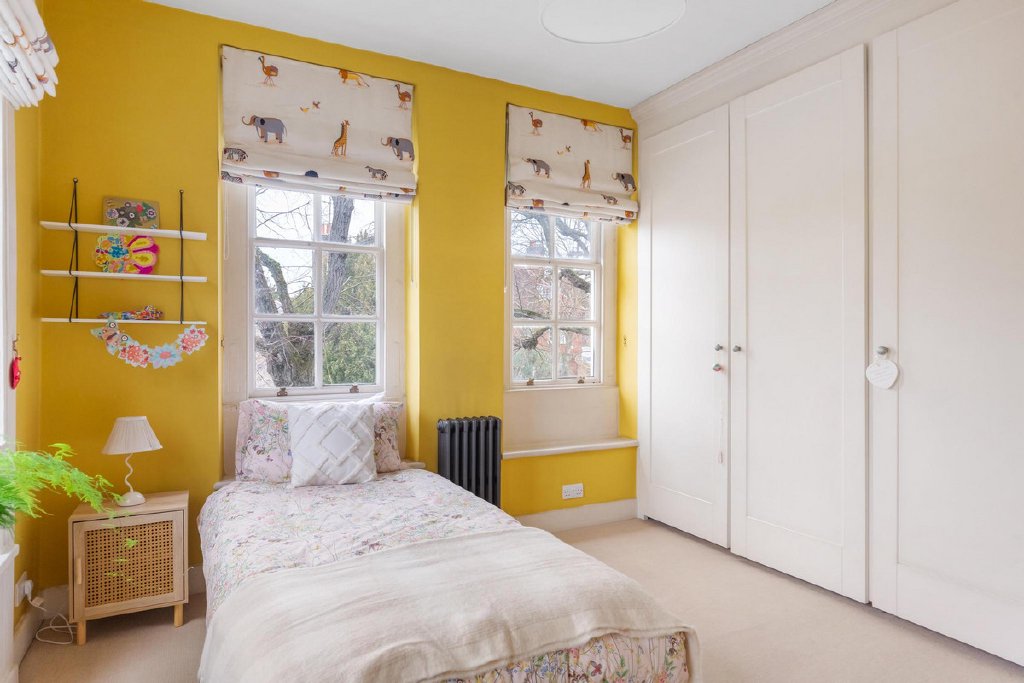 The first floor hosts an elegant principal bedroom suite with built-in wardrobes and an en-suite bathroom finished to a high standard. The remaining bedrooms are all generous doubles, allowing flexible use for guests, children, or home working. Two further bathrooms serve the upper levels, each appointed with contemporary fittings that complement the period style of the home.