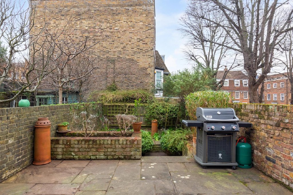 Outside, the property enjoys a private south-facing garden surrounded by mature greenery, offering a quiet and secluded escape from city life. The space is ideal for dining, entertaining, or simply relaxing on warm days, with a sense of calm that reflects the character of The Butts itself.
