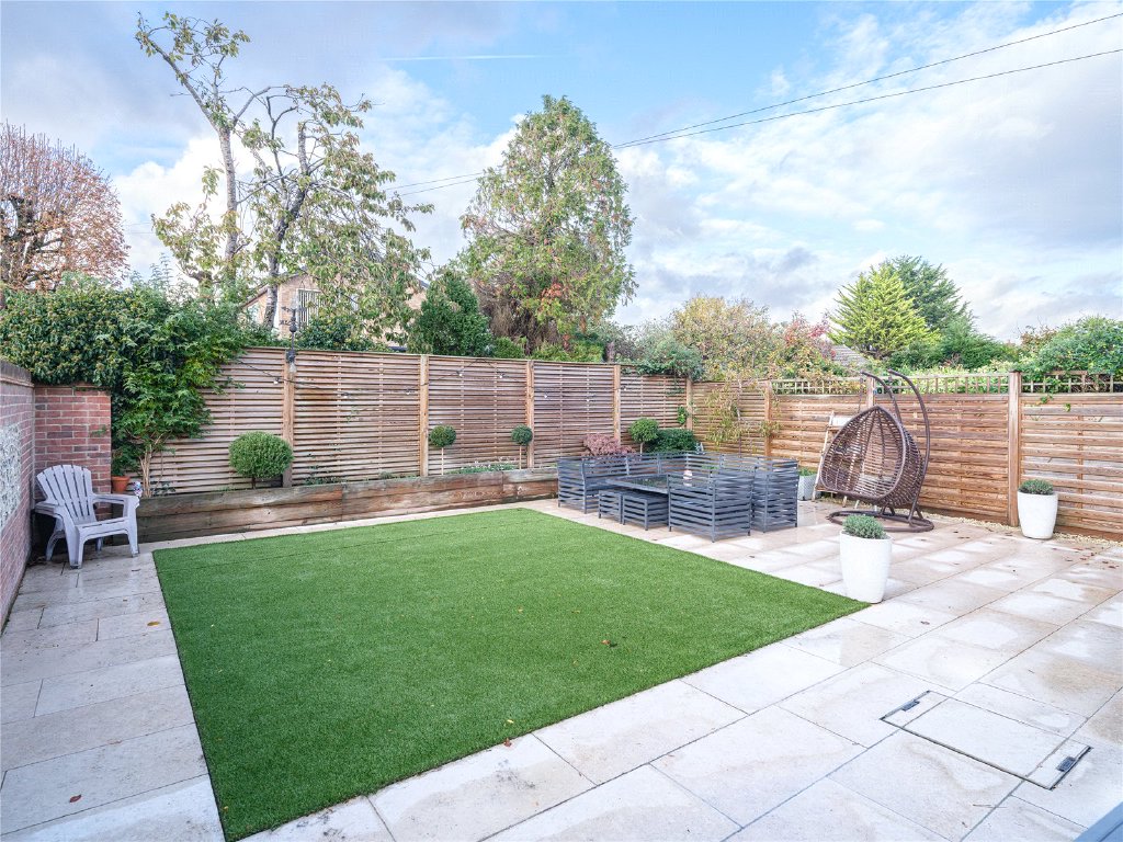 66 Westlecot Road enjoys a fully enclosed, low-maintenance rear garden, designed for easy outdoor living. A large, paved patio area provides the perfect space for dining and entertaining, while the artificial lawn adds a touch of greenery without the upkeep. The garden is neatly bordered and enjoys a good degree of privacy — an ideal space to relax and unwind throughout the year.