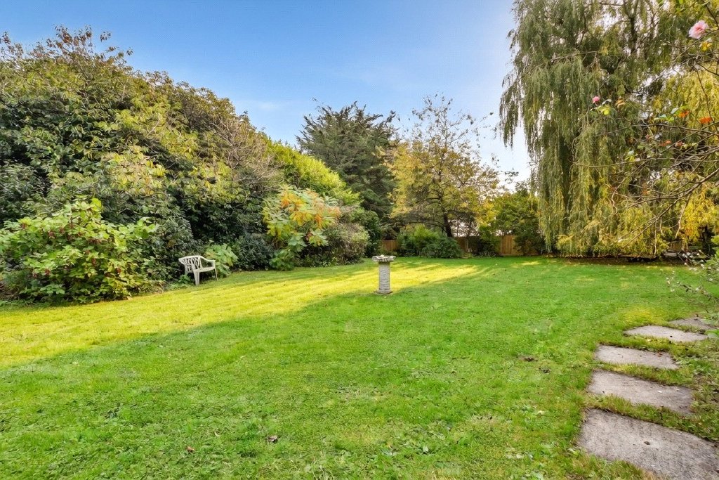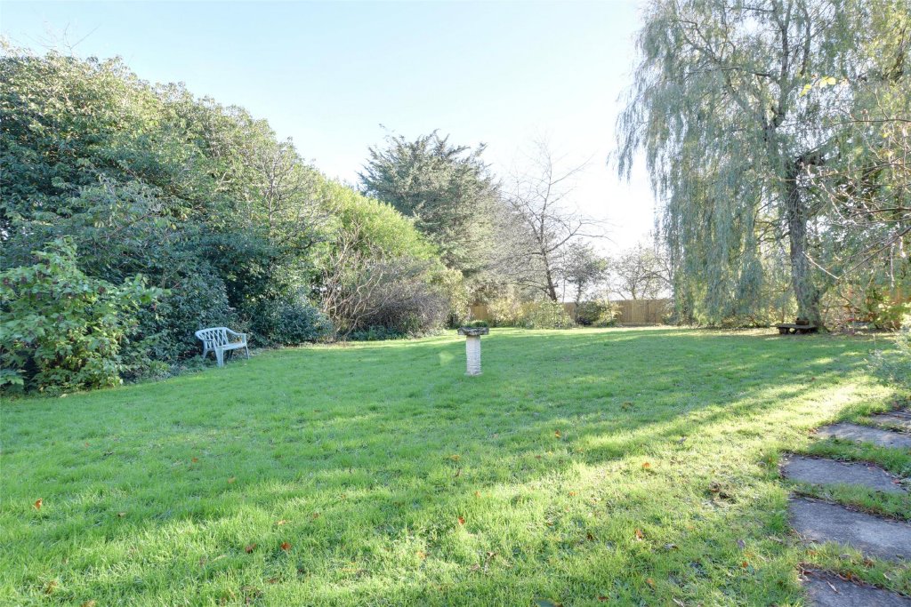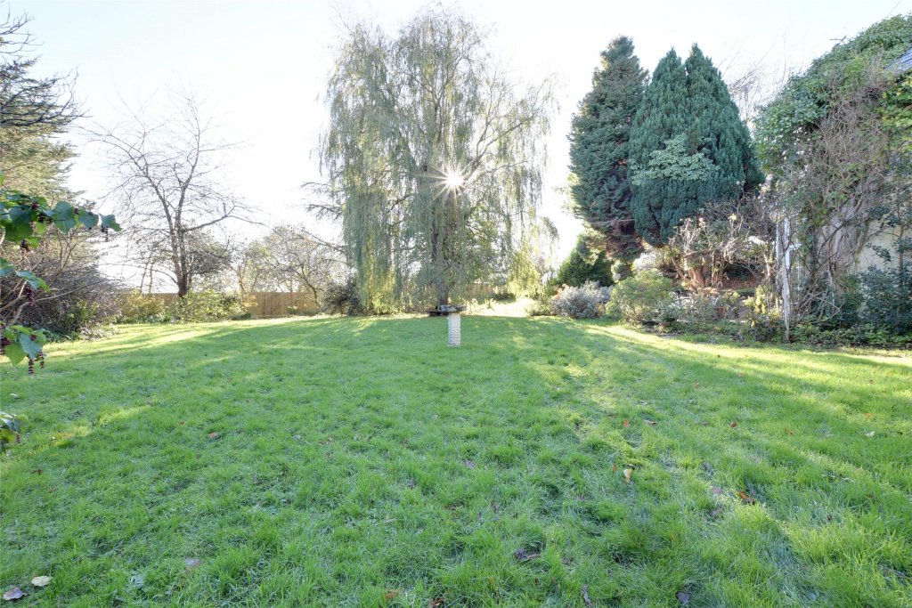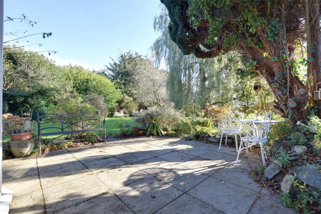 Outside, the gardens are simply delightful. Extending to just under an acre, they are predominantly laid to level lawns, framed by mature hedging, trees and shrubs which provide both colour and privacy throughout the seasons. The south-facing orientation ensures sunshine for much of the day, and a paved patio terrace adjoining the conservatory offers the perfect place for morning coffee or evening drinks as the sun sets over the countryside.