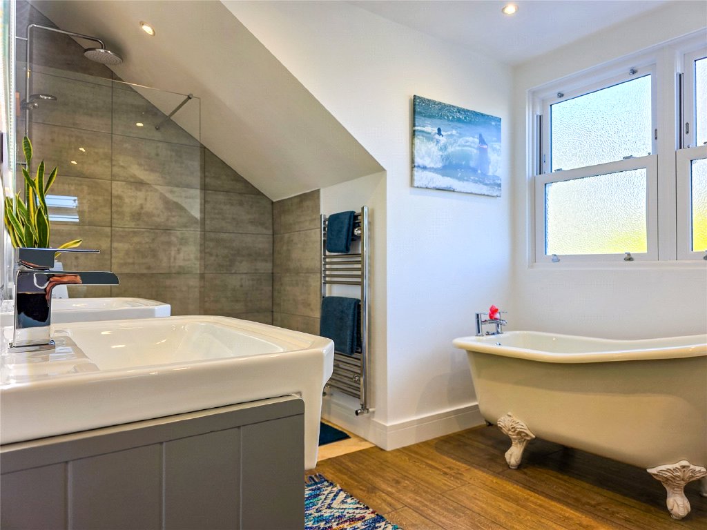 Upstairs there are three further well-proportioned bedrooms, all with beautifully appointed ensuites. The principal suite also features a balcony, perfect for enjoying a morning coffee.