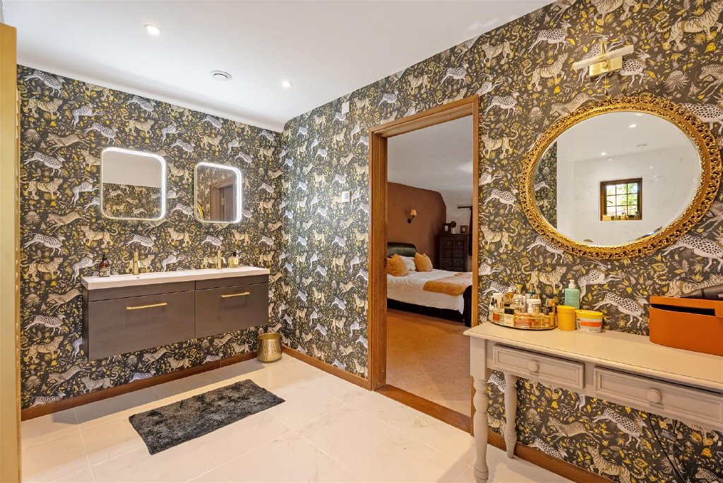 Upstairs, five well-proportioned bedrooms offer comfort and style. The principal suite features fitted wardrobes and a luxurious en-suite bathroom, while the 2nd bedroom has en-suite facilities and a family bathroom serves the other bedrooms.