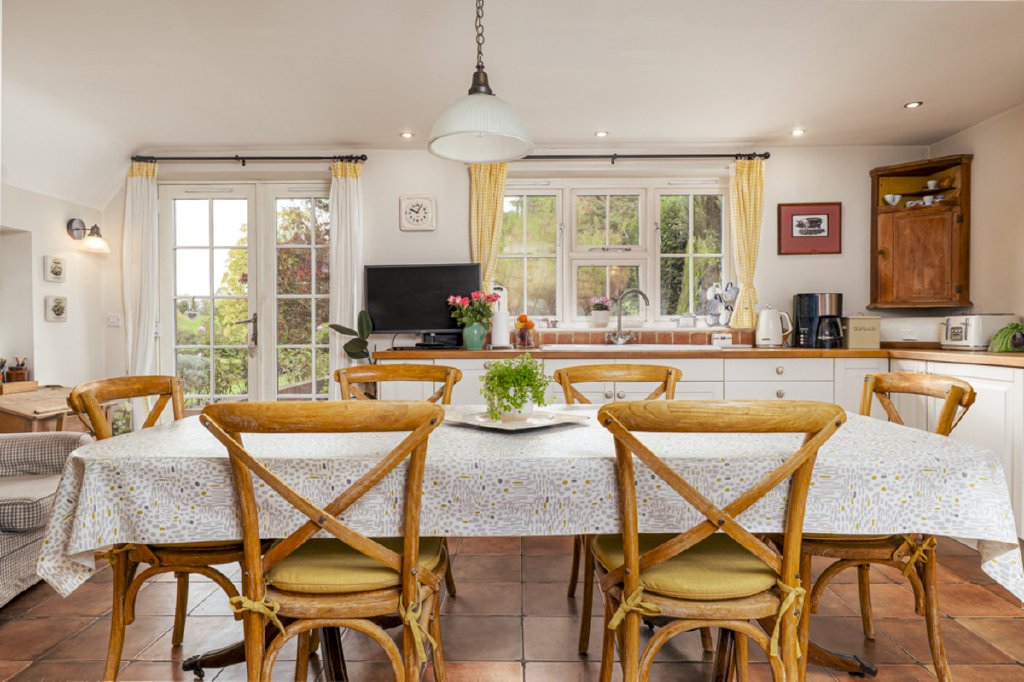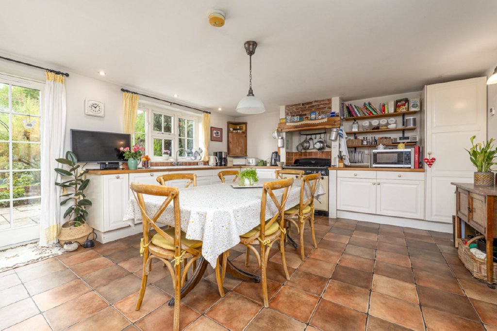 Old Oak is entered via a solid oak front door which leads to the Reception Hall with stairs, cloaks/WC, beamed ceiling and double-glazed window. The Snug with open fireplaces beams and large bow window overlooking the side garden. The Lounge with full length Inglenook fireplace, beamed ceiling, bow window and a glazed door opening to the side garden. The Pot Room, off the lounge has an original slate shelf and the Old Pantry now serving as a study. The Kitchen in farmhouse style is located at the end of the cottage in the extension. South facing it is flooded with natural light and has French doors opening on to a large patio area with retractable awning and heating. The kitchen units include integrated appliances and circle a central dining area perfect for family and friends entertaining.