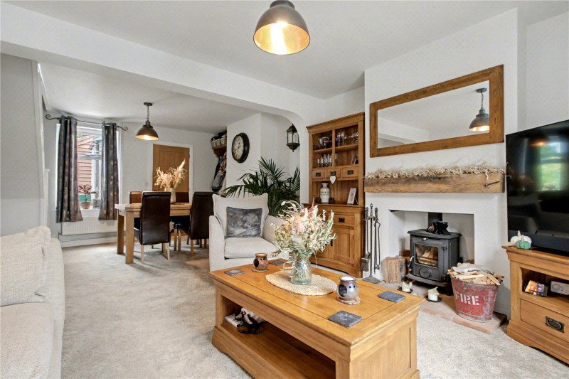 Outside, the gardens wrap around the property, offering privacy and tranquillity with established hedging and mature borders. A patio provides a wonderful spot for summer dining, while a useful outbuilding and generous shingle driveway to the front add practicality to the home’s charm.