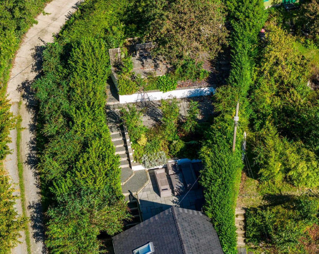 To the rear, 1 Abertafol opens out to a beautifully secluded three-tiered garden, offering multiple terraces and seating areas surrounded by established greenery. From the upper levels, panoramic views stretch across the bay — an ideal spot for morning coffee or evening sunsets — while the lower patio provides a sheltered space for outdoor dining. A working culvert for water and gas heating add practical finishing touches.