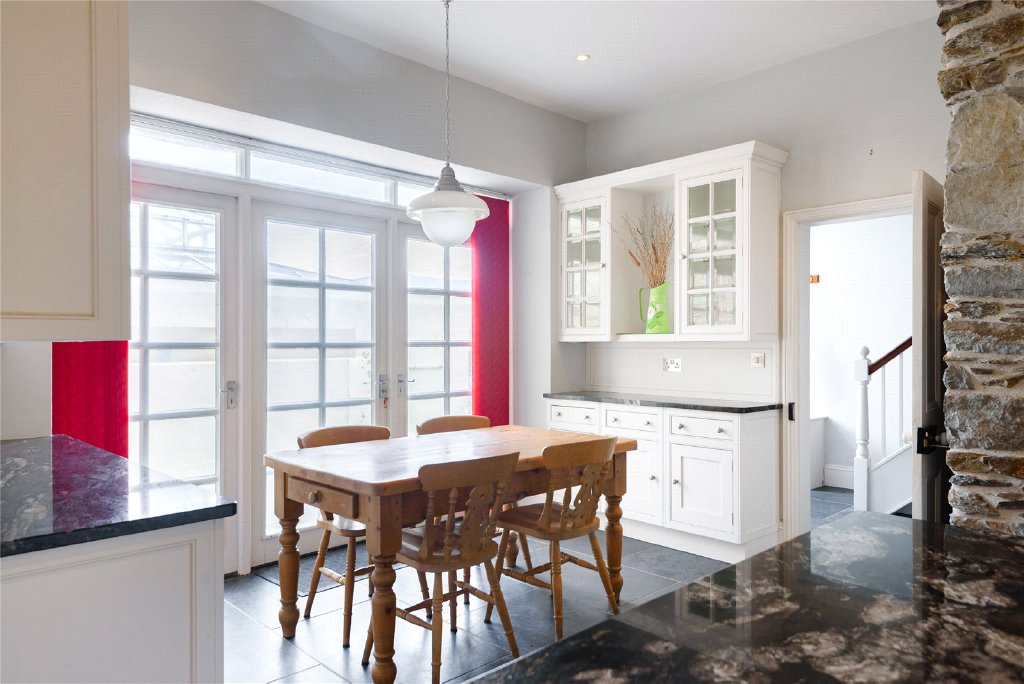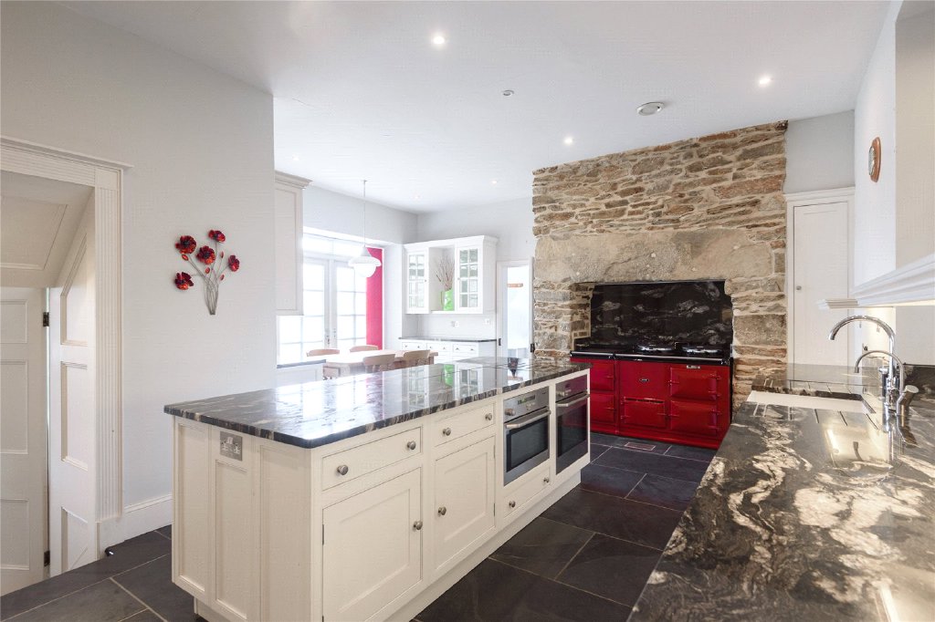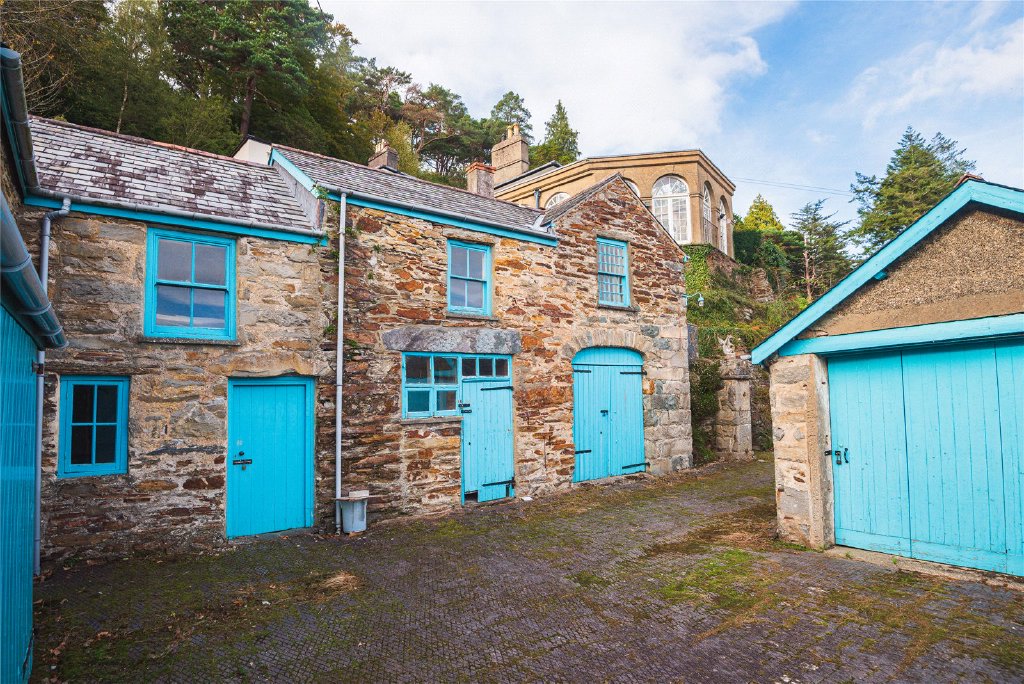 Further features include a mushroom house, glasshouses, extensive garden stores, garaging, and a private quay with direct access to the estuary—perfect for launching kayaks or small boats.