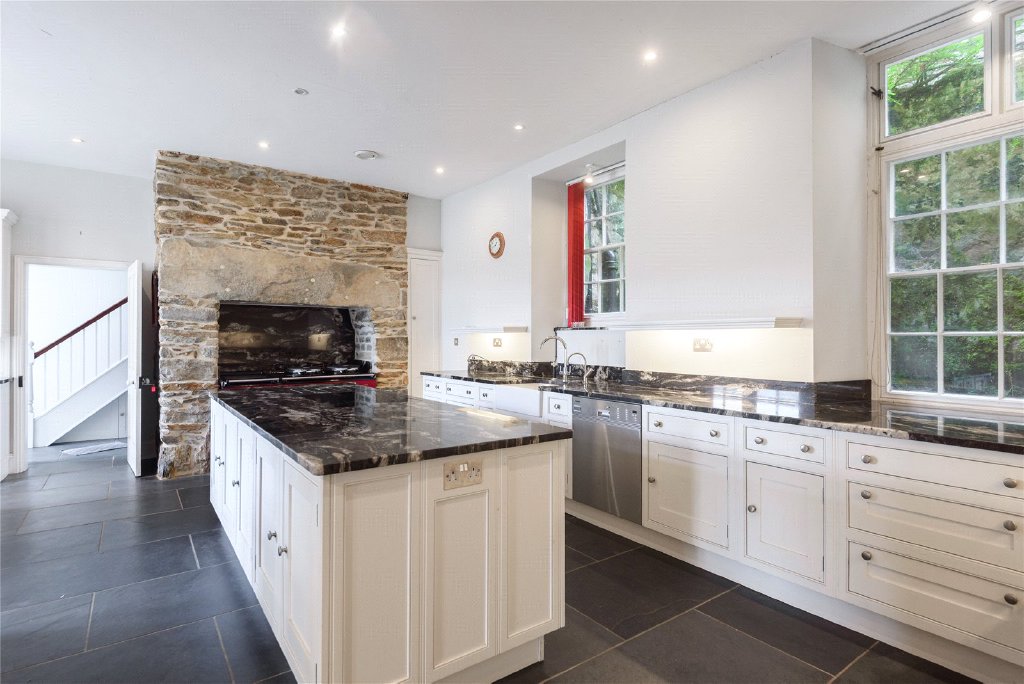 A winding driveway leads to the main house, while the Panorama Walk, a public footpath beloved for its views, passes along the boundary of the estate. Privacy is preserved throughout by mature planting and a stone wall.